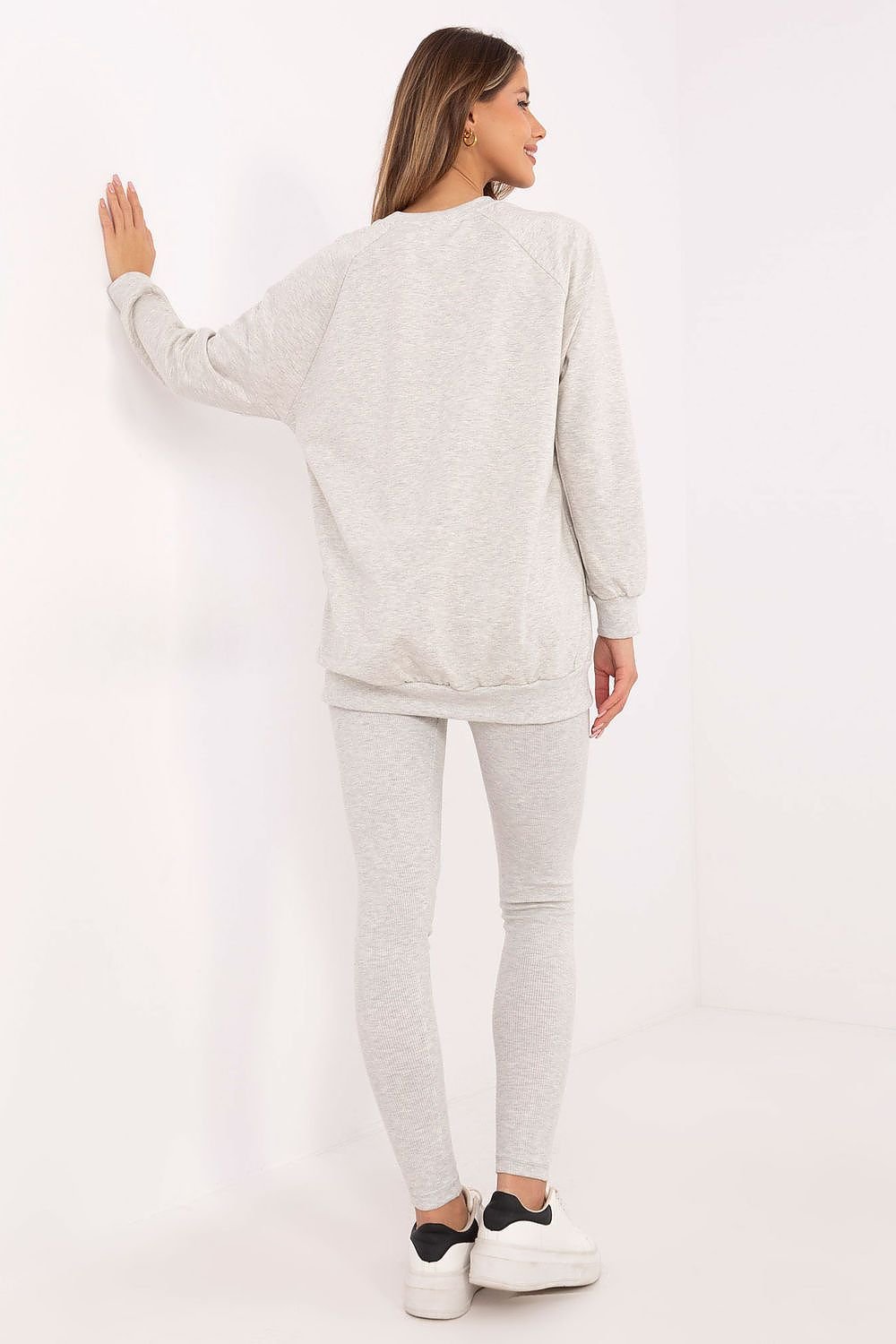 Women's set consisting of a hoodie and leggings is an excellent choice for everyday, casual stylizations. Ideal for women who value comfort, yet want to look fashionable and stylish. The hoodie with a classic cut, round neckline, and long sleeves is made of a high-quality blend of cotton, polyester, and elastane. It is soft to the touch, stretchy, and durable, providing comfort throughout the day. Subtle patches and embroidery on the sleeves and front give it a unique character, highlighting the modern design. Leggings with tapered legs and a high waist are the perfect complement to the set. Made of cotton with a hint of elastane, they perfectly fit the silhouette, providing full freedom of movement and comfort. The smooth pattern makes the set versatile and easy to combine with various accessories. It is a perfect choice for everyday outings, relaxation, or casual activities. Material composition: Hoodie: 72% cotton, 22% polyester, 6% elastane Leggings: 90% cotton, 10% elastane