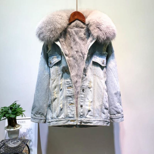 Chaqueta vaquera vaquera con solapa de capa [en la tienda]