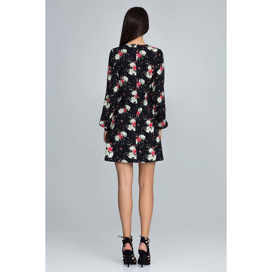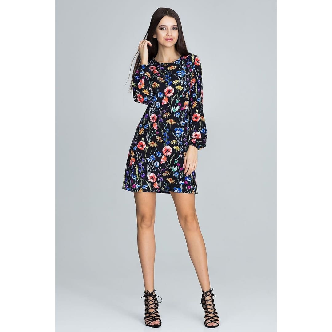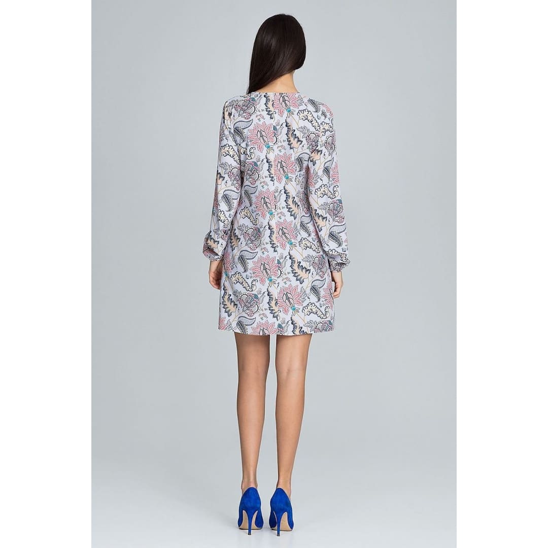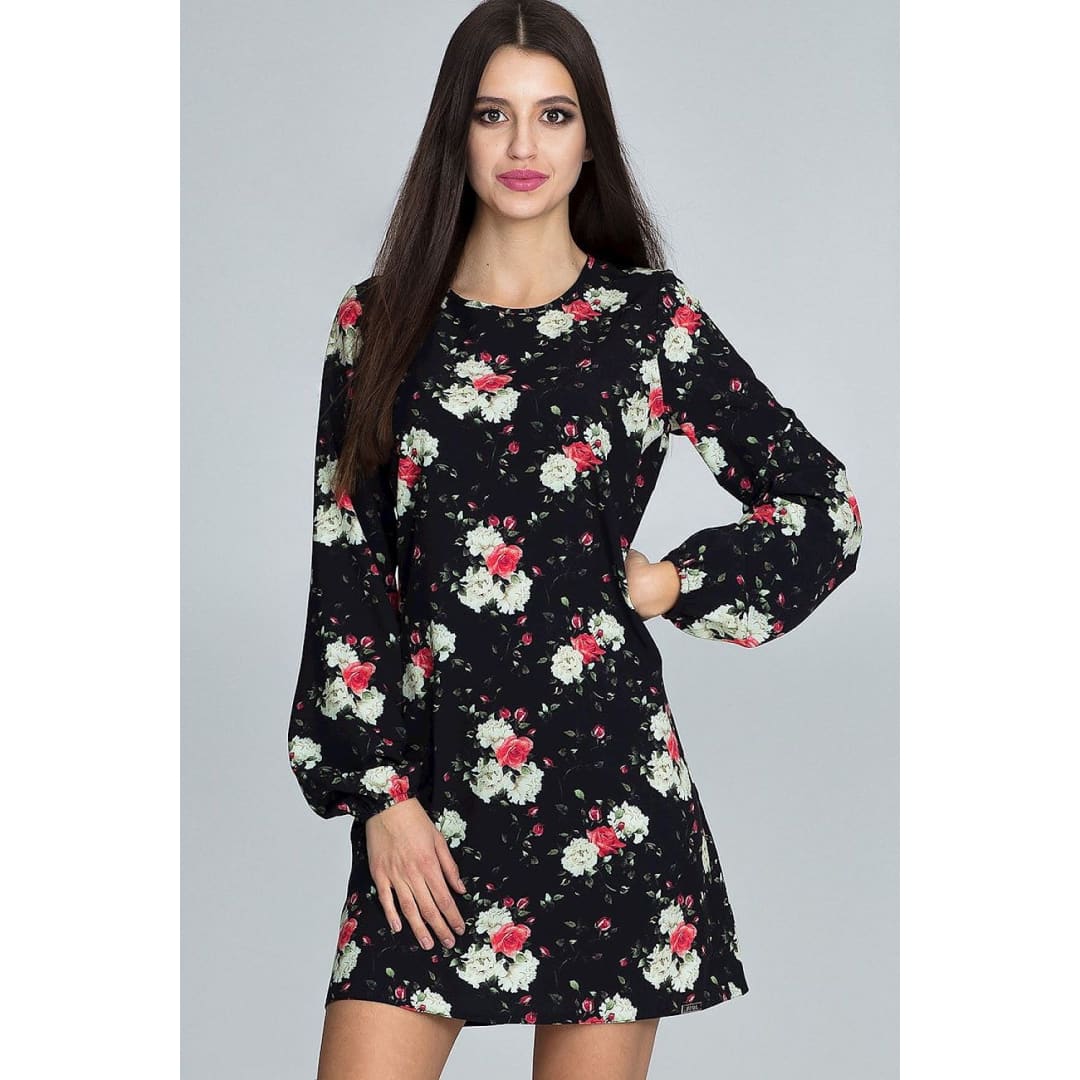 A simple dress in beautiful floral patterns with long, slightly creased sleeves. Model made of light, airy fabric gives femininity and expressiveness. It will make you stand out from the crowd.