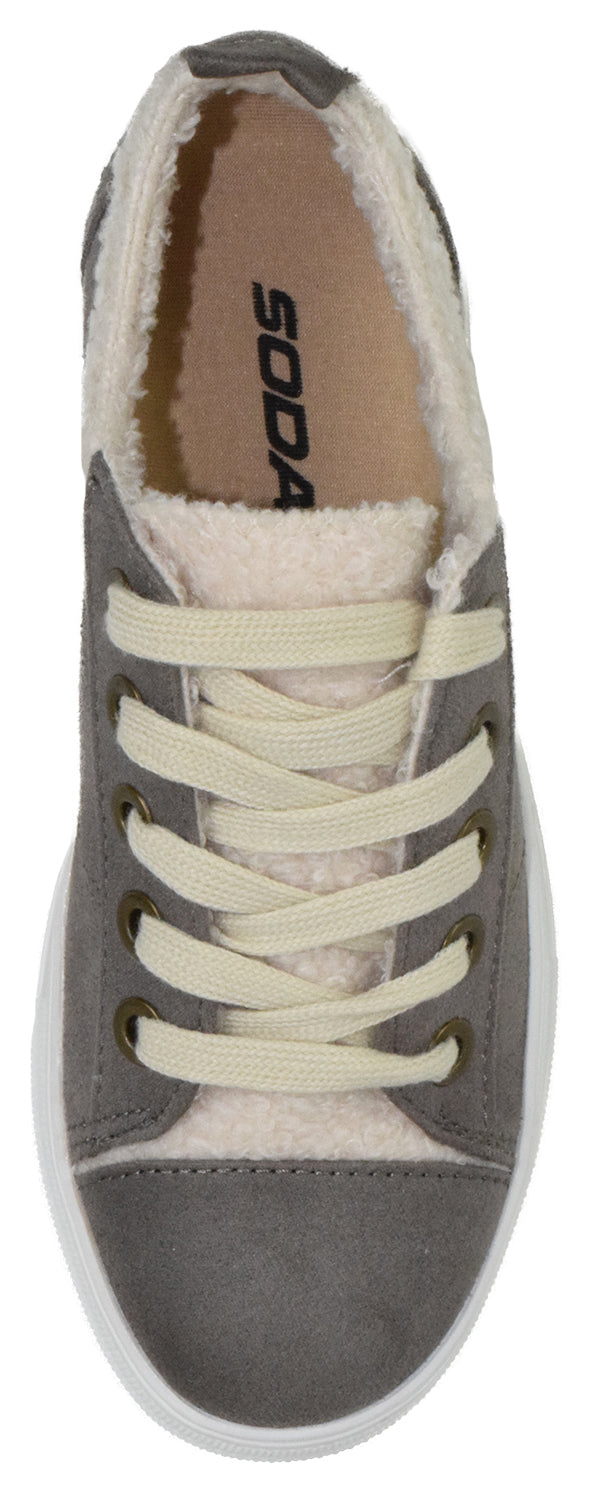 - Soda Flat Women's Shoes Lace Up Loafers Casual Sneakers Synthetic Fur Hidden Flatform ENDEAR-G