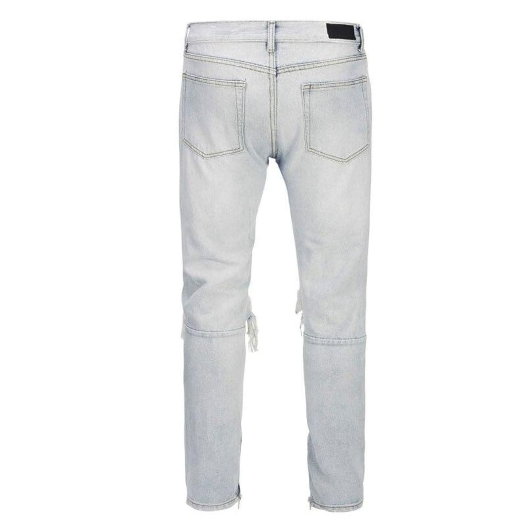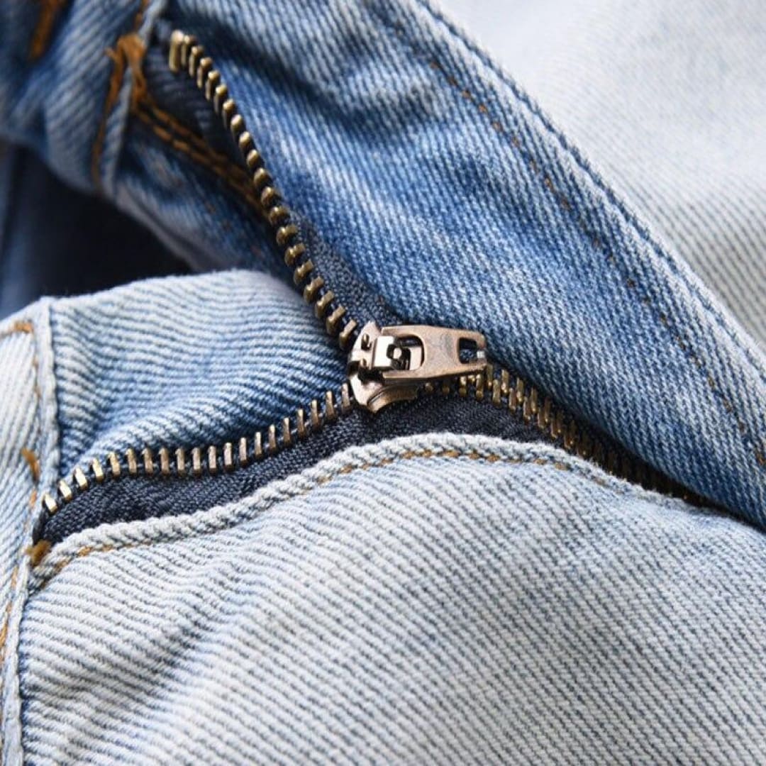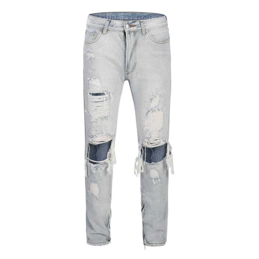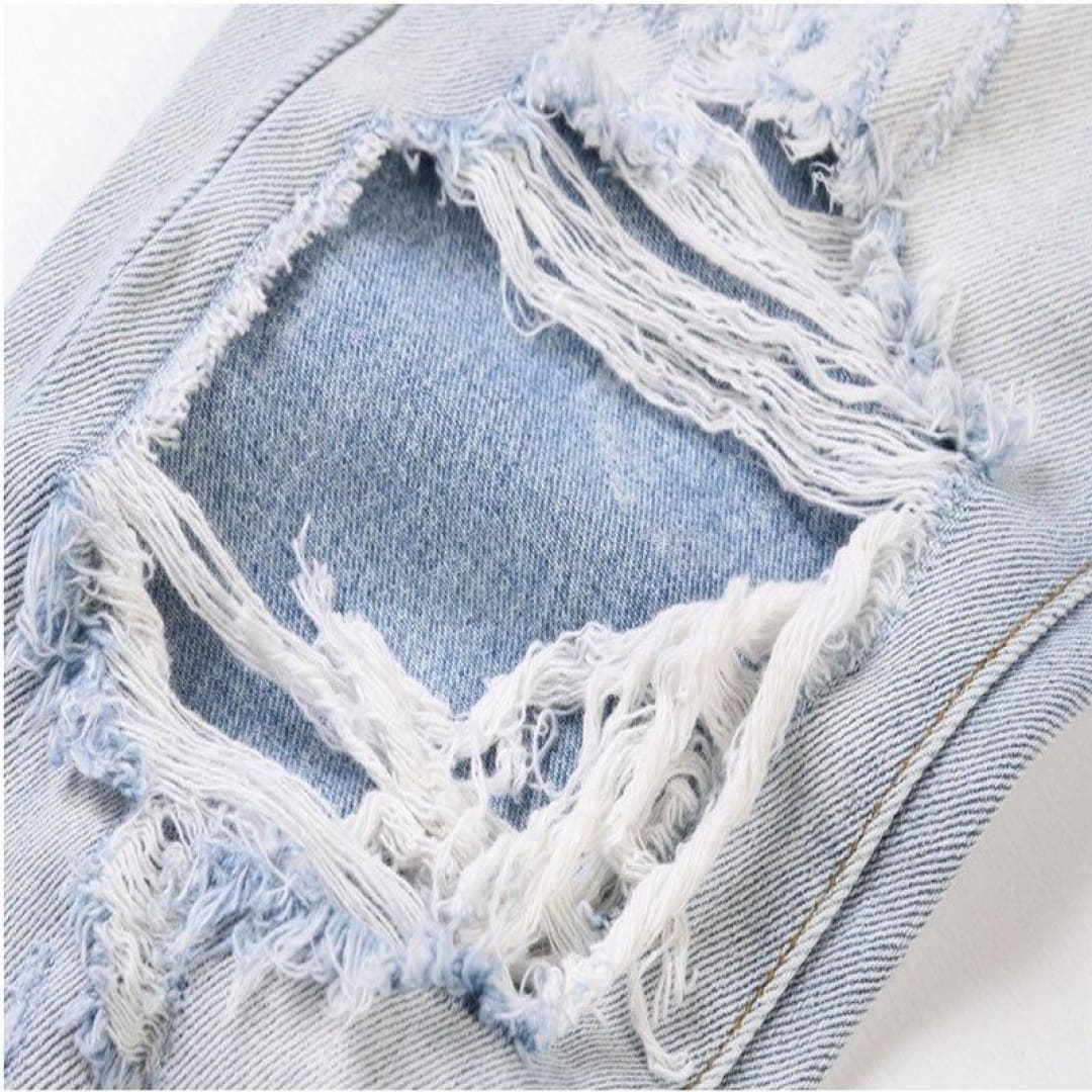 - SIN RODILLAS Diseño de jeans de moto rotos.
