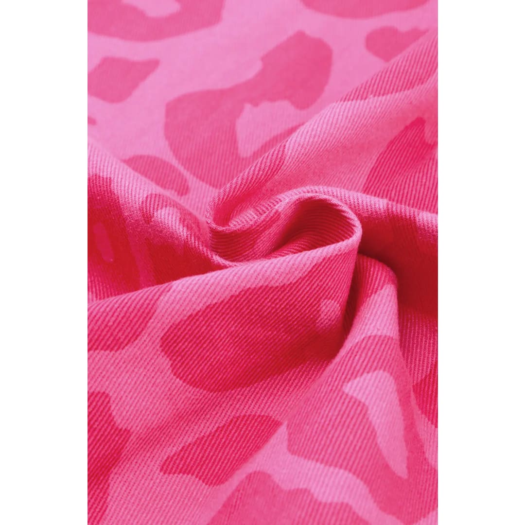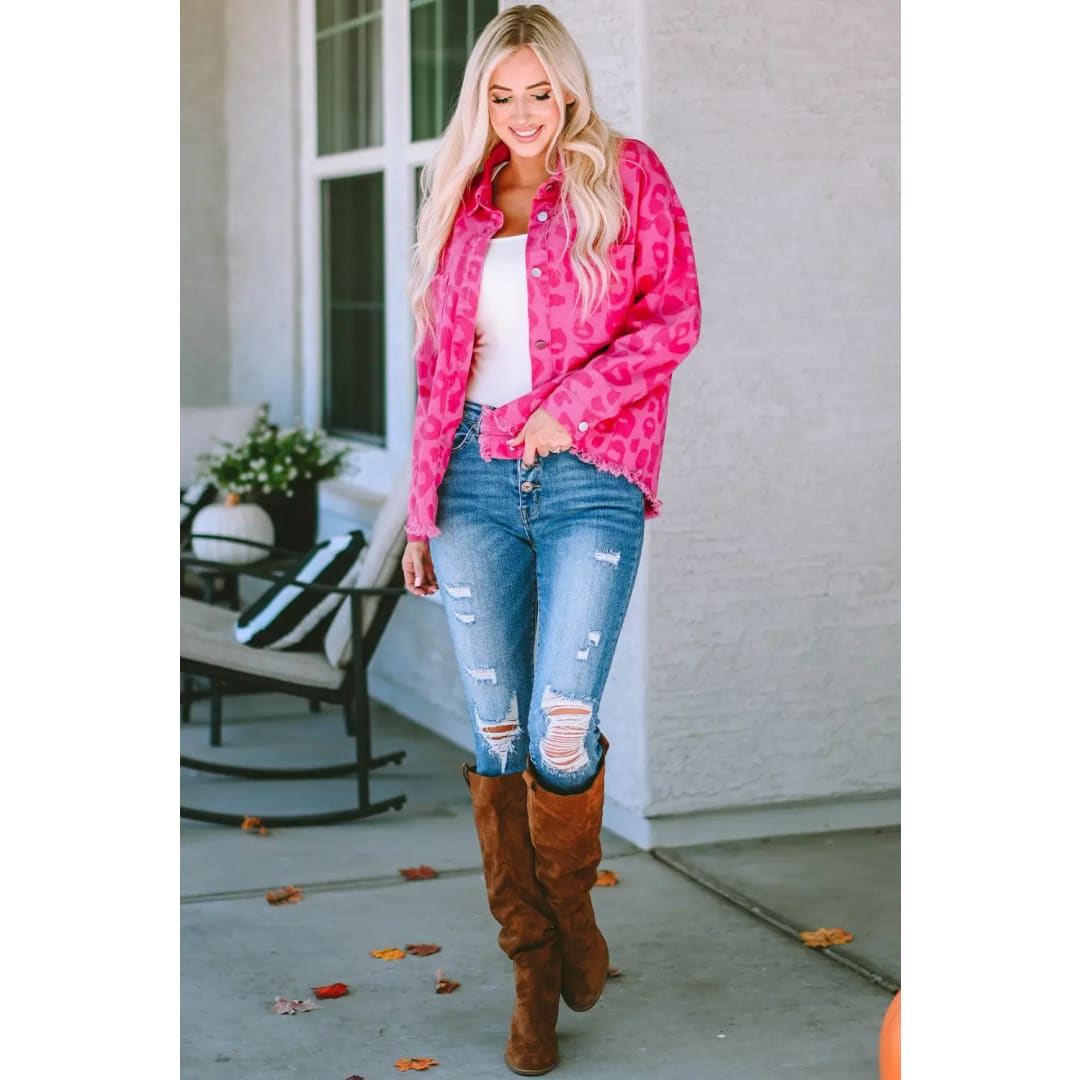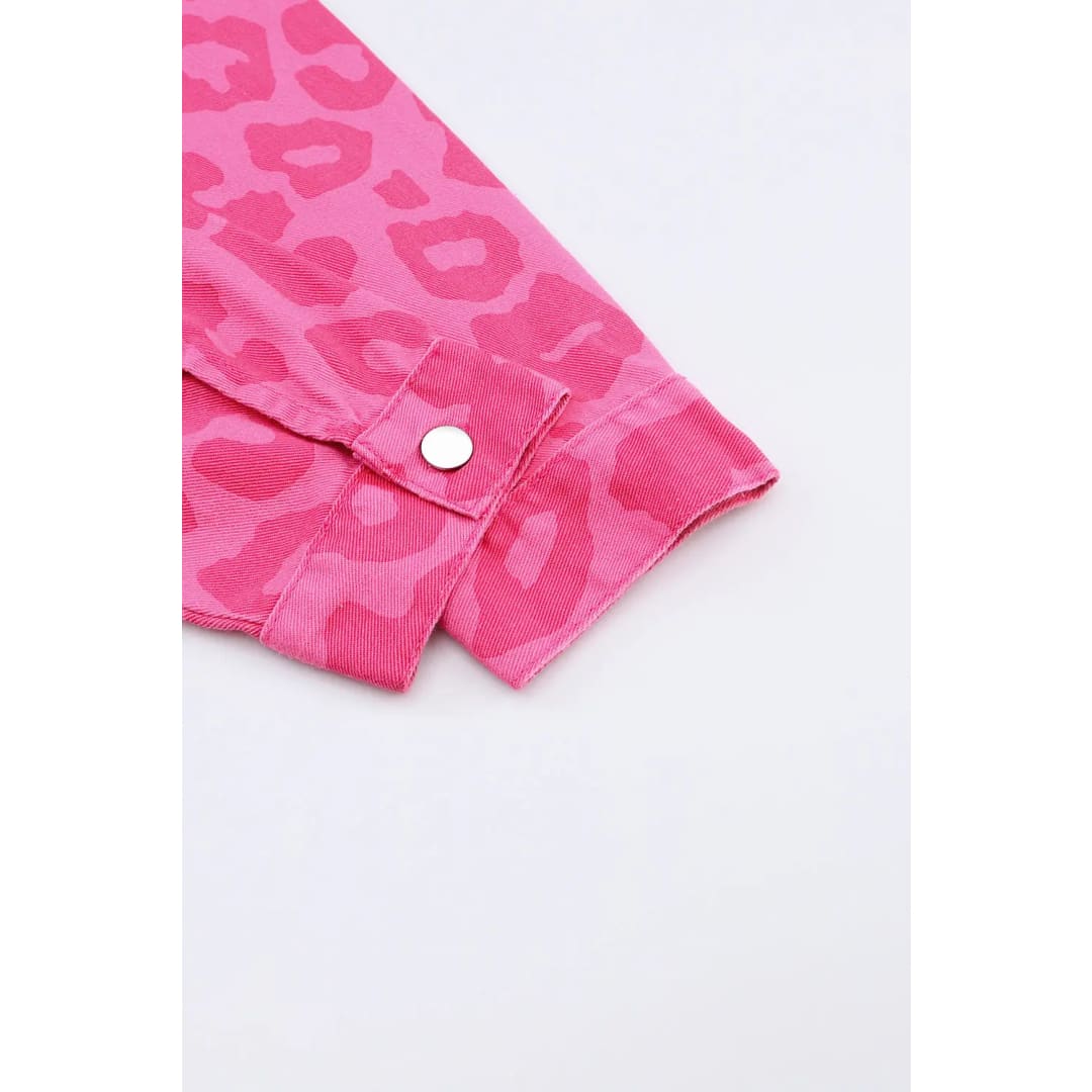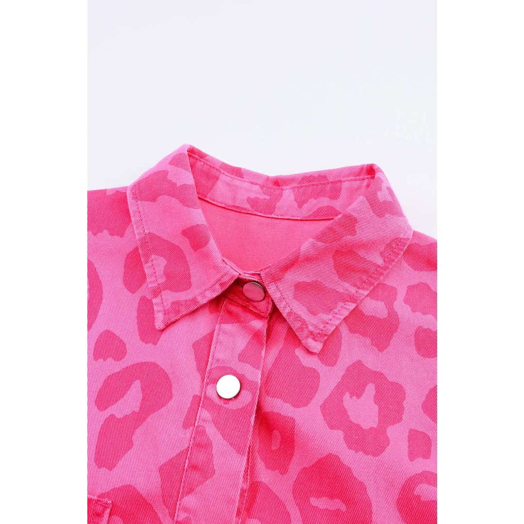 Pink Leopard Print Button Cuffs Raw Hem Jacket