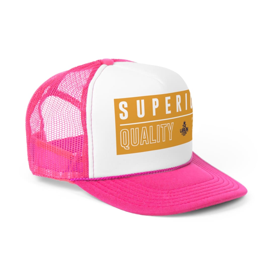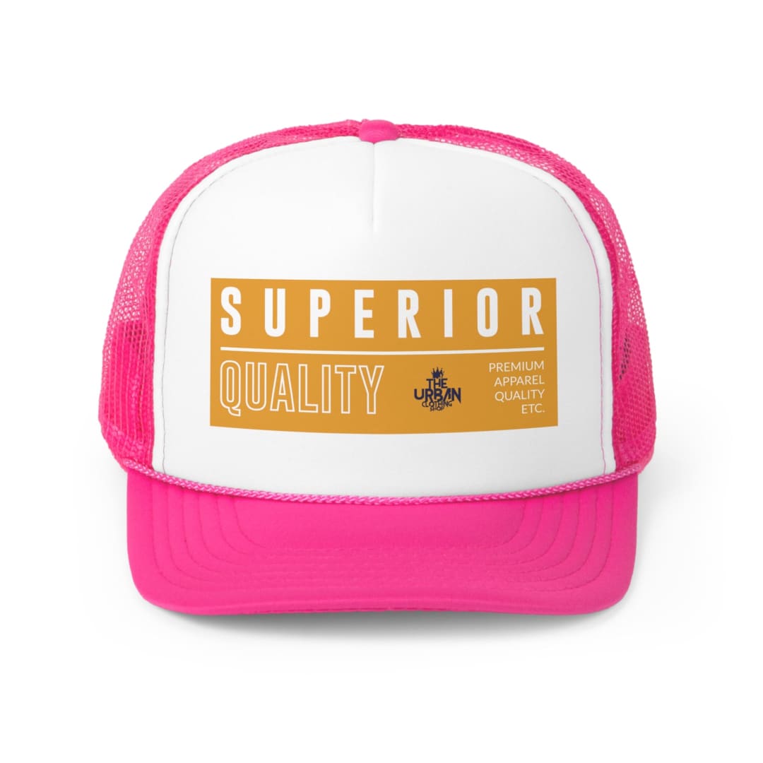 Trucker caps are versatile and fit almost any occasion. A 100% polyester front and 100% nylon mesh weave back make these hats super durable through regular wear and tear. They come in one size with an adjustable plastic snap closure: 22.8" (58cm). The cap's front has six rows of visor stitching. Pick any (or all) of the four-color variations and start customizing them with your original designs.