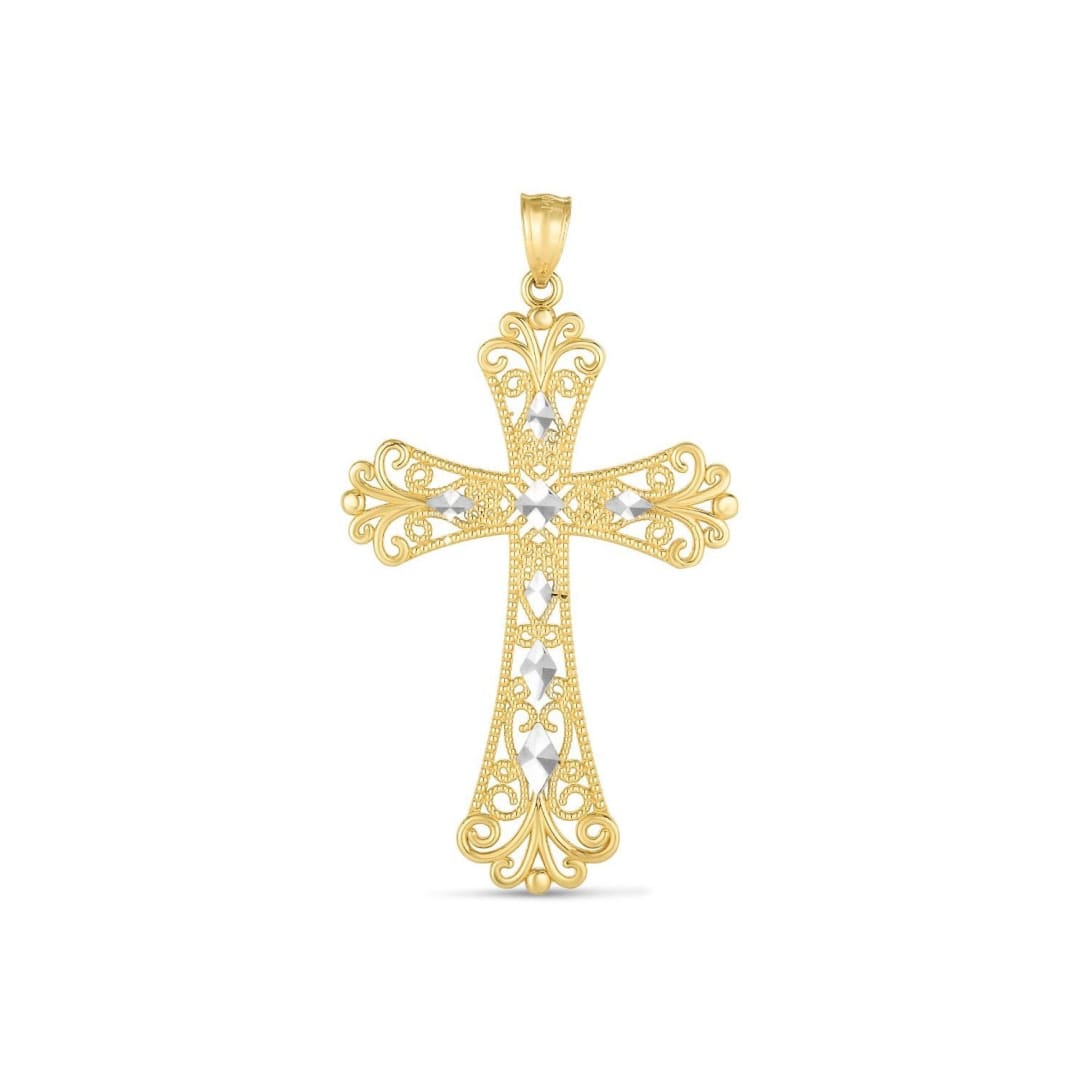 14k Two Tone Gold High Polish Diamond Cut Cross Pendant