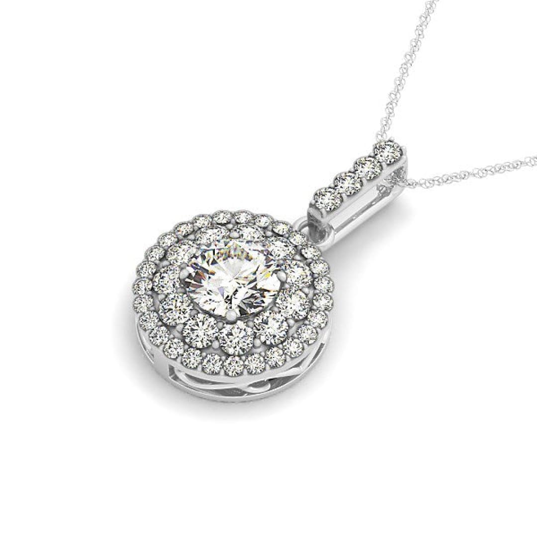 14k White Gold Diamond Halo Round Shape Pendant (1 1/4 cttw)