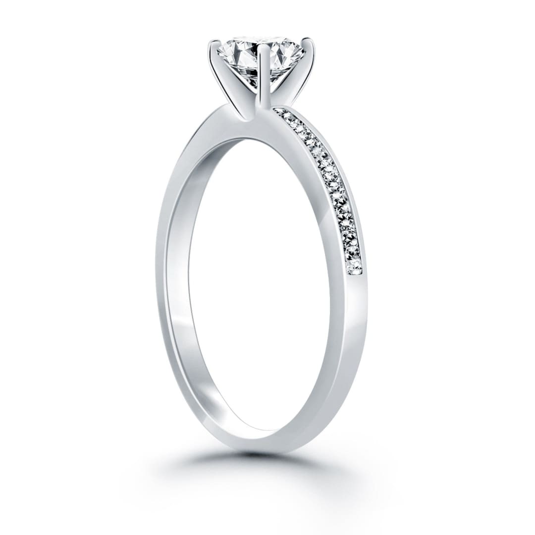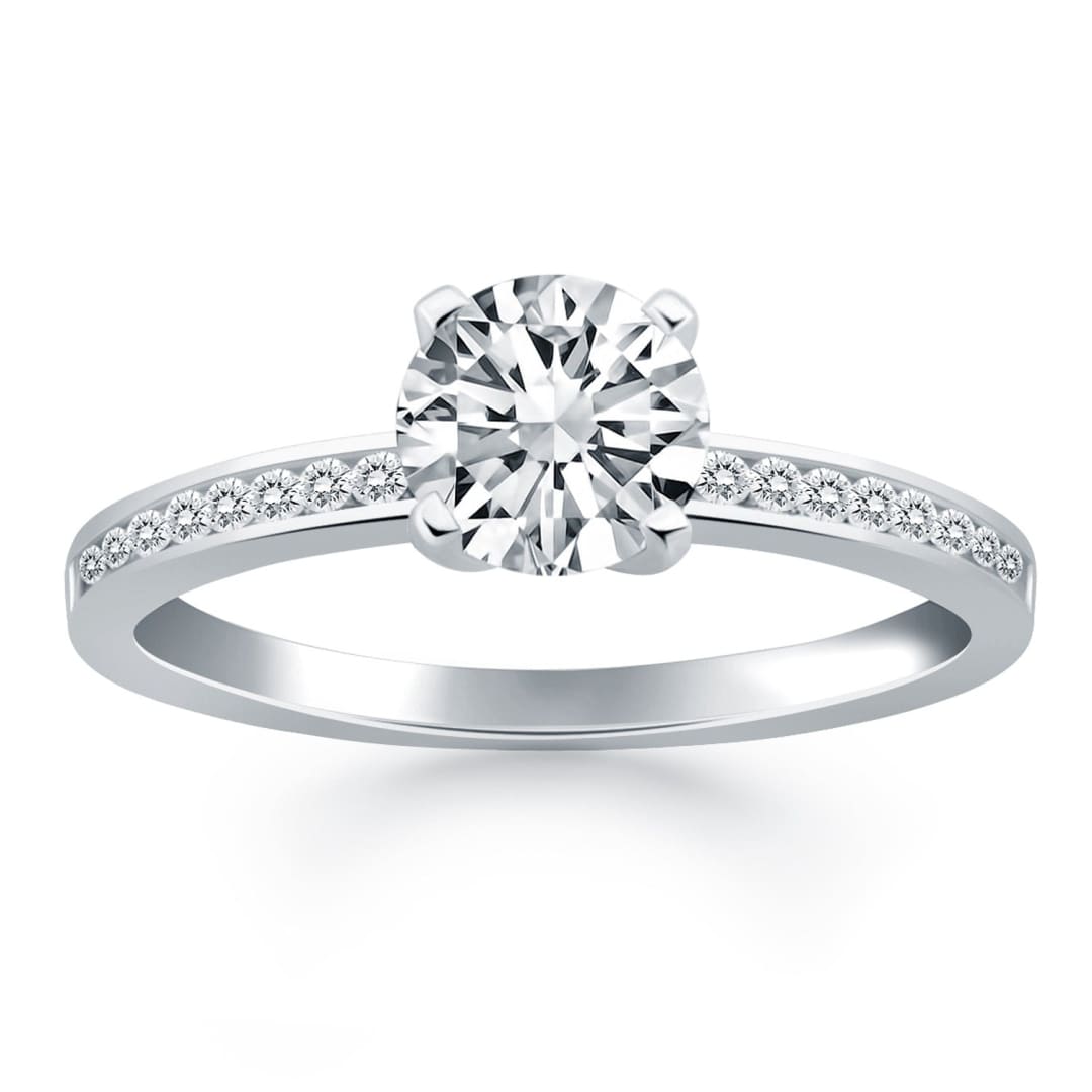 14k White Gold Engagement Ring with Diamond Channel Set Band