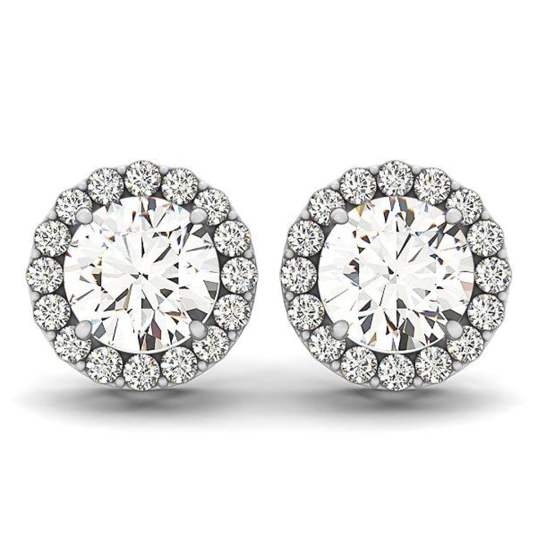 14k White Gold Four Prong Round Halo Diamond Earrings (1 1/6 cttw)