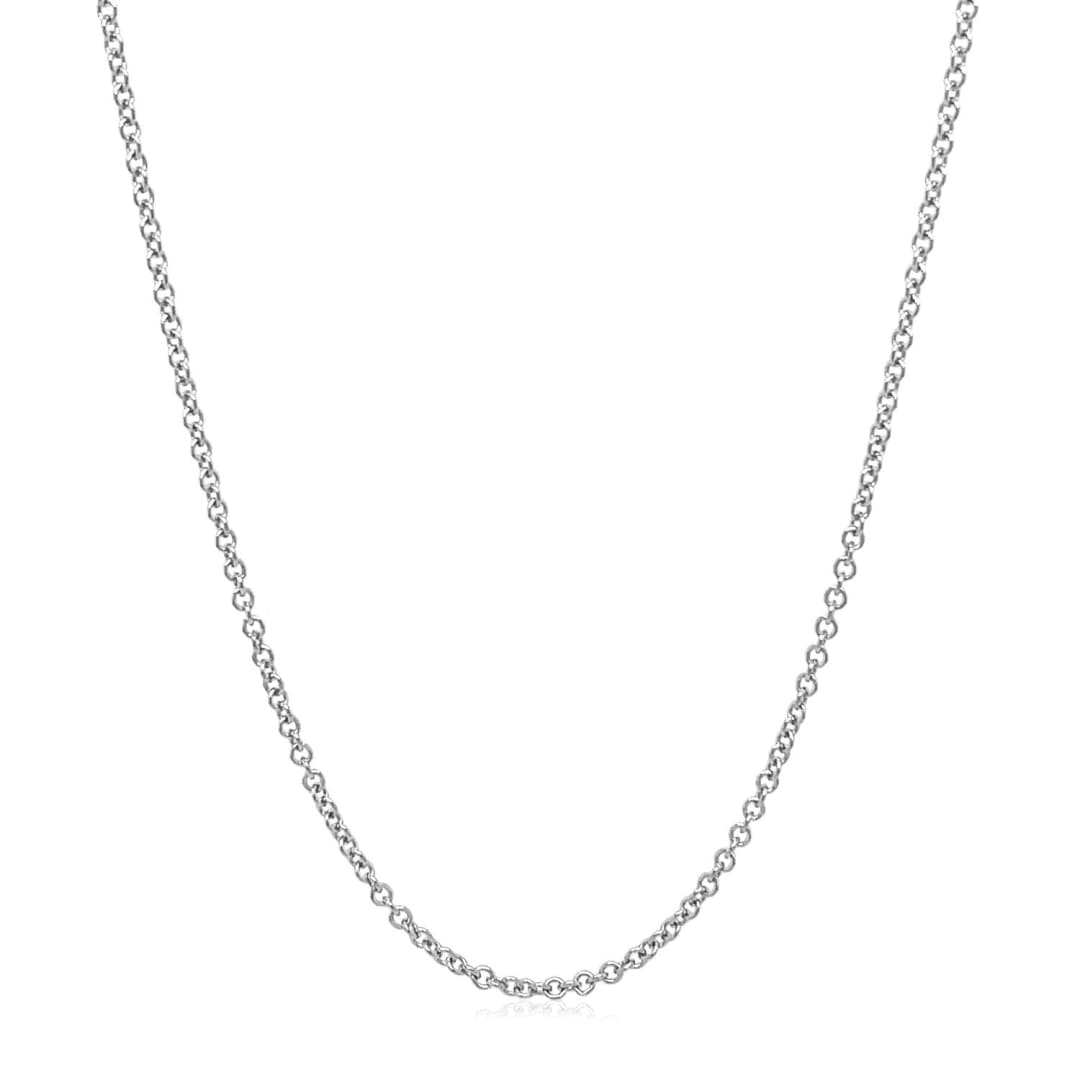 This round cable link chain comes in 14k white gold and has a width of 1.5 millimeters.