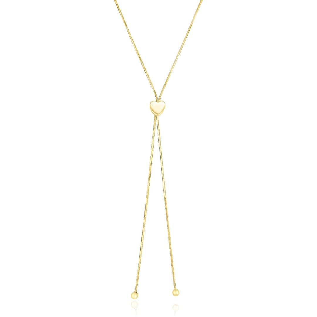 14k Yellow Gold Adjustable Heart Style Lariat Necklace