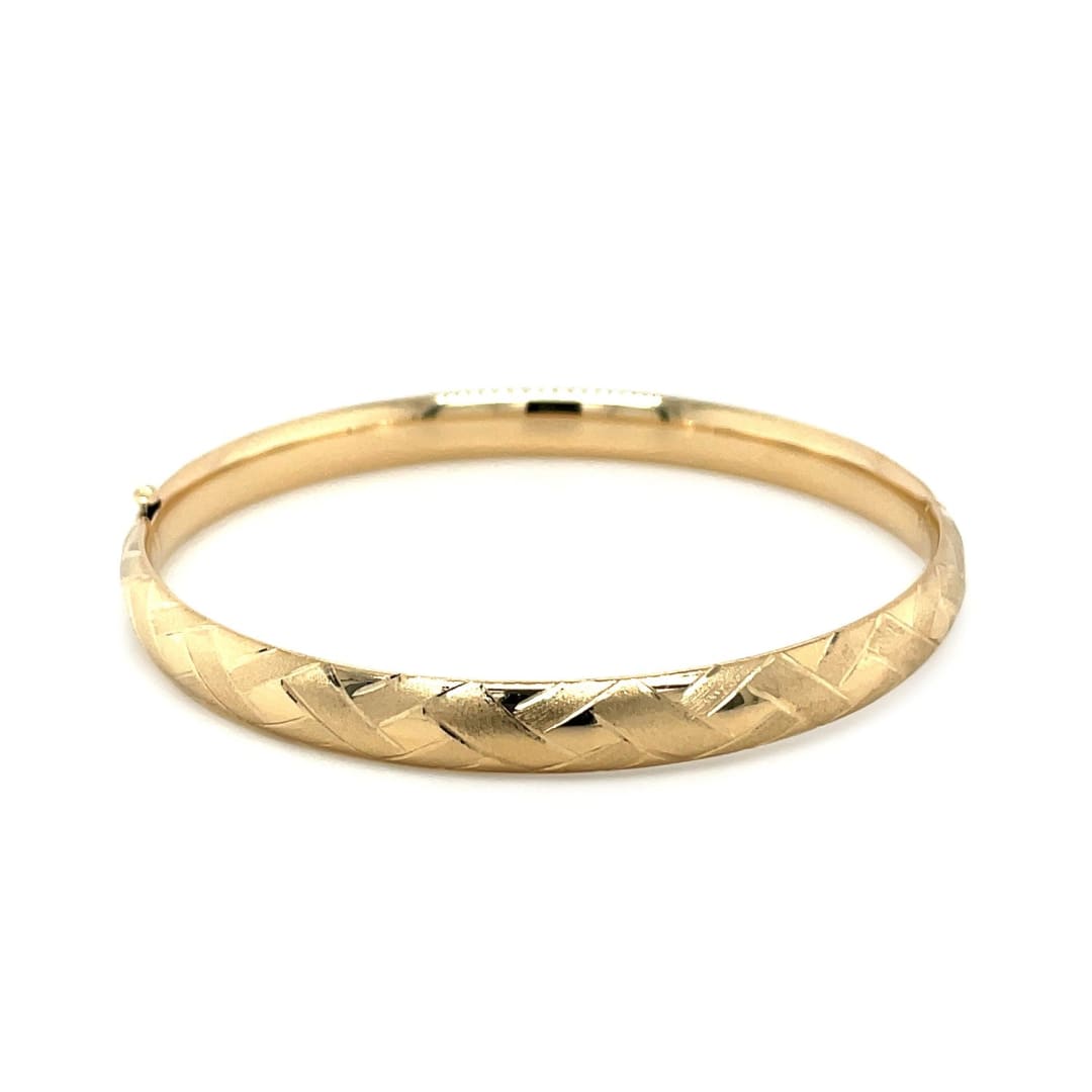 14k Yellow Gold Domed Bangle with a Weave Motif