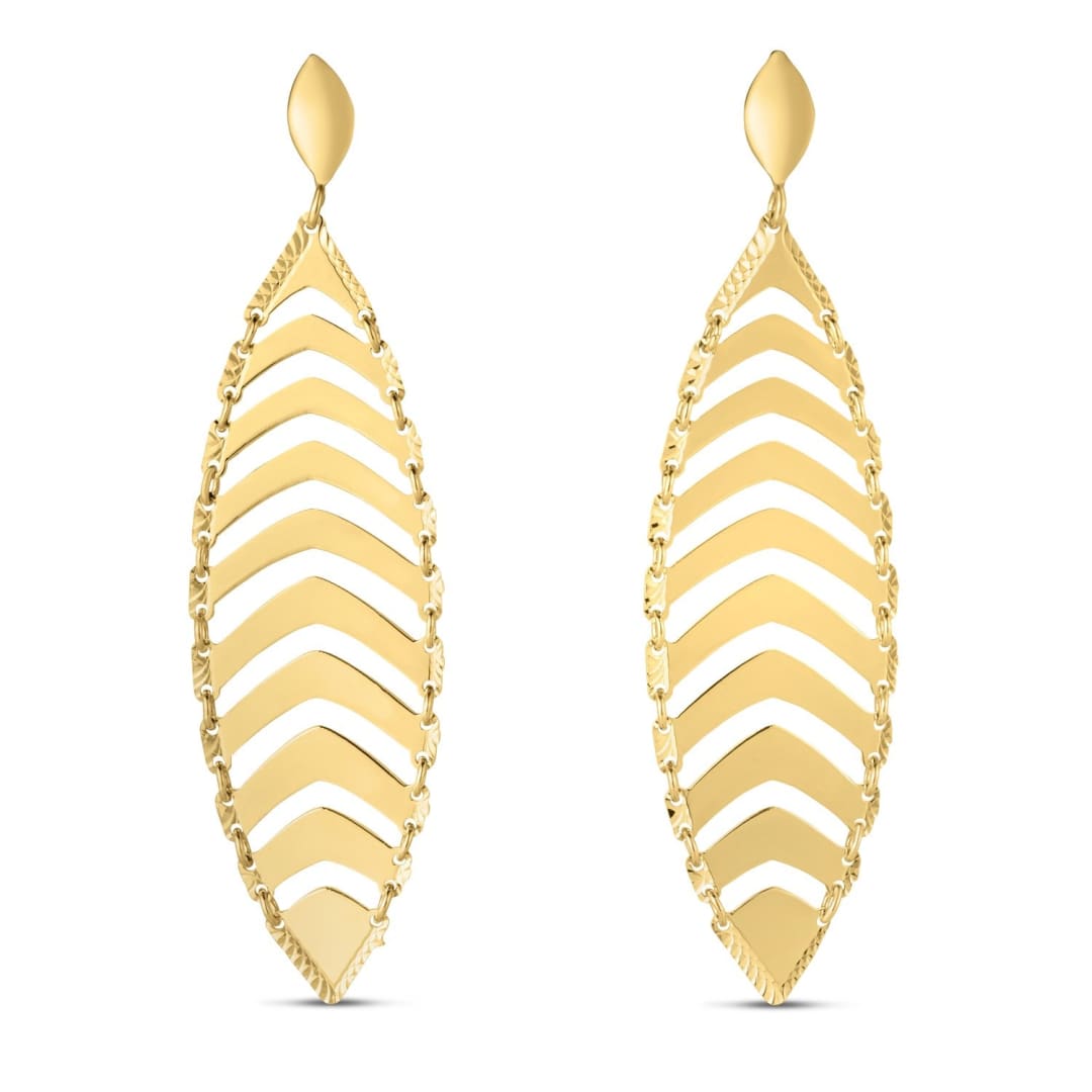 These Drop Leaf earrings are the perfect elegant & stylish design. These will definitely add a bit of uniqueness to your collection. Crafted in 14k yellow gold with a high polish finish & push back clasp.