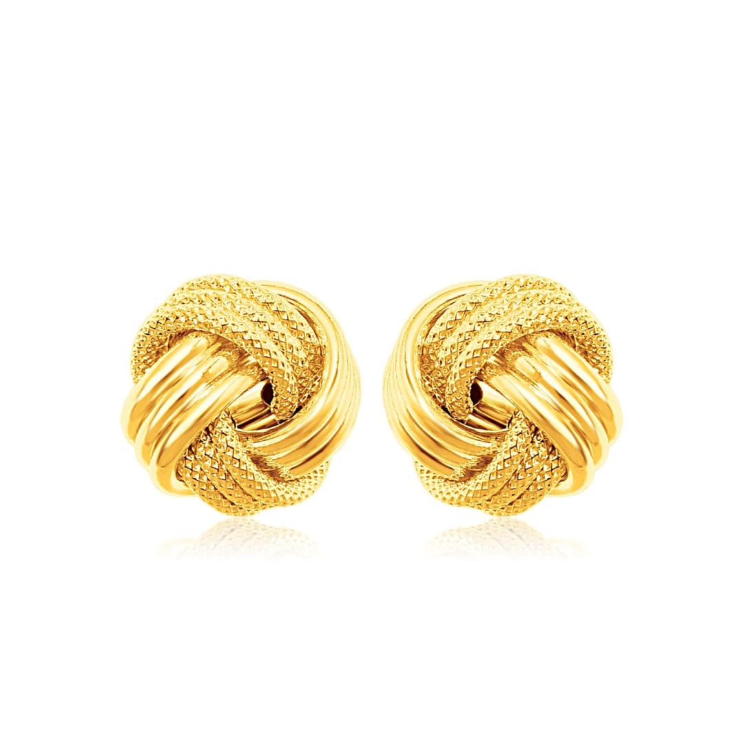 14k Yellow Gold Love Knot with Ridge Texture Earrings