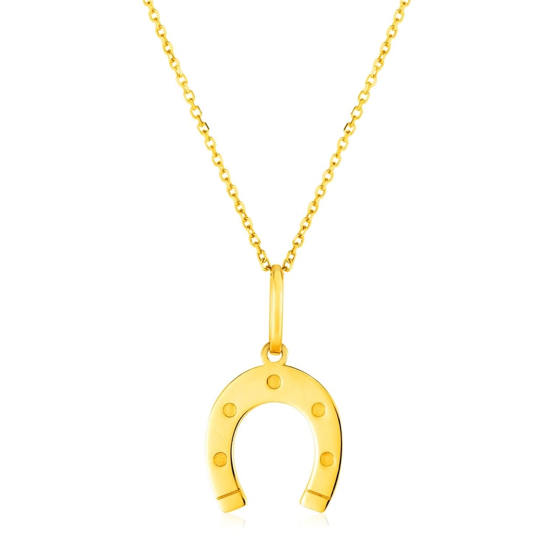 Luck will be with you always when you wear a polished 14K yellow gold horseshoe, suspended beautifully from exquisite chain. Necklace is 18 inches long.