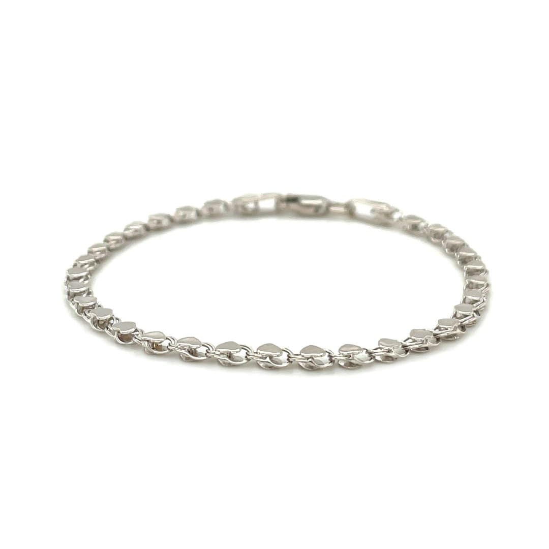 This heart bracelet chain comes in 14k white gold and has a width of 2.9 millimeters. Secured with a lobster clasp.