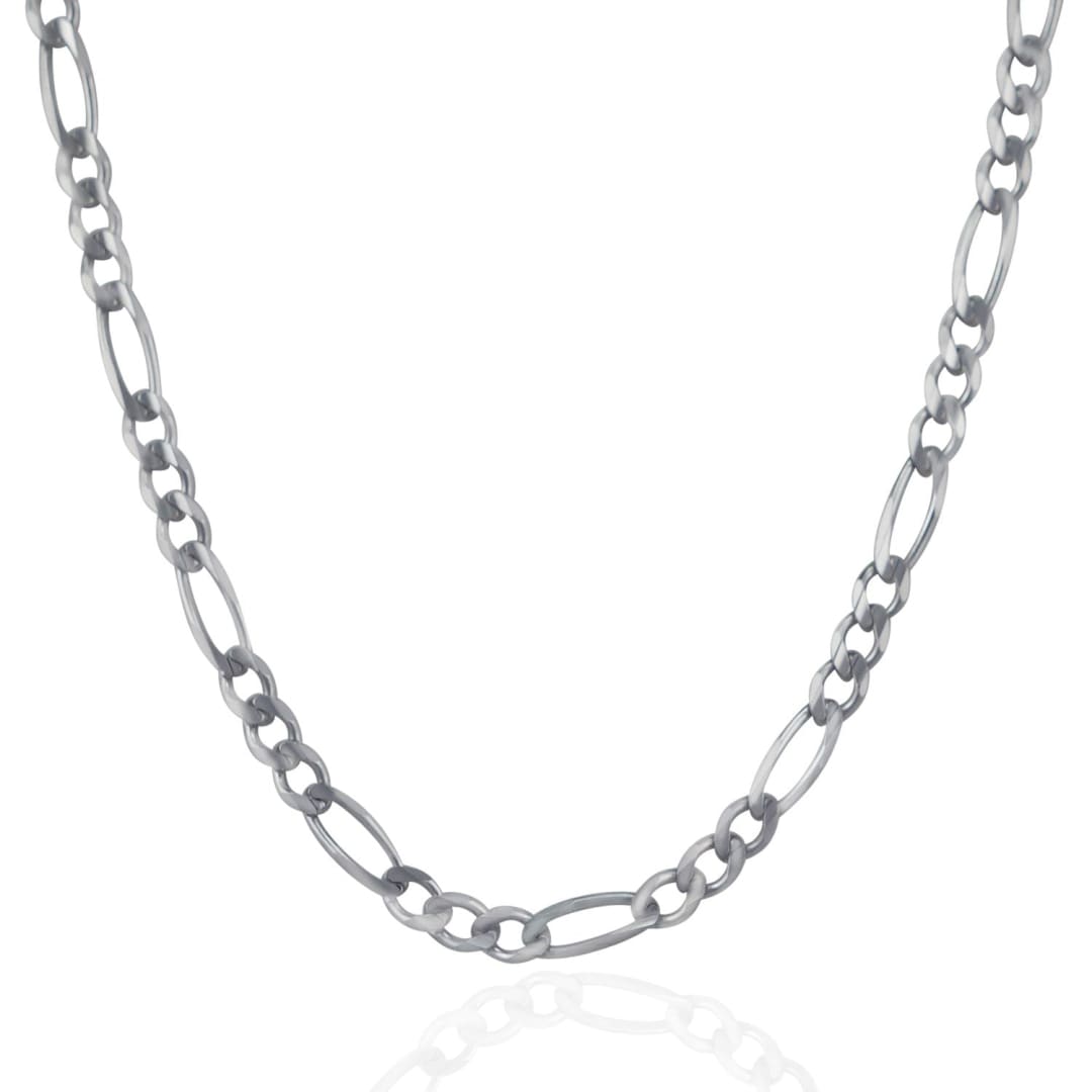 This solid Figaro chain comes in 14k white gold and has a width of 4.6 millimeters.