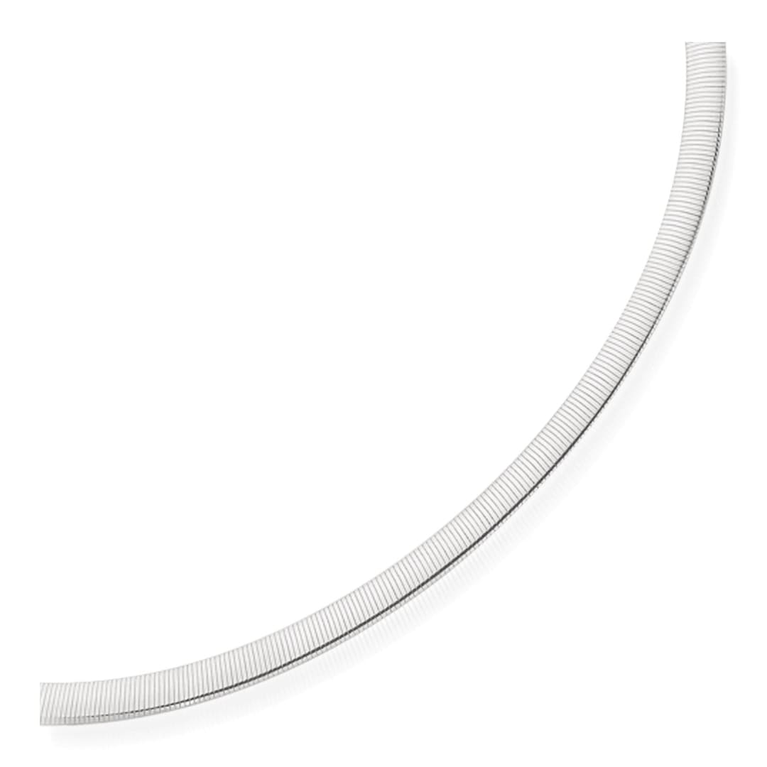 This reversible omega necklace is crafted in glistening 14k two-tone gold and has a width of 6.0 millimeters. It features one side of true 14k yellow gold and one side true 14k white gold. Secured with a button safety clap.