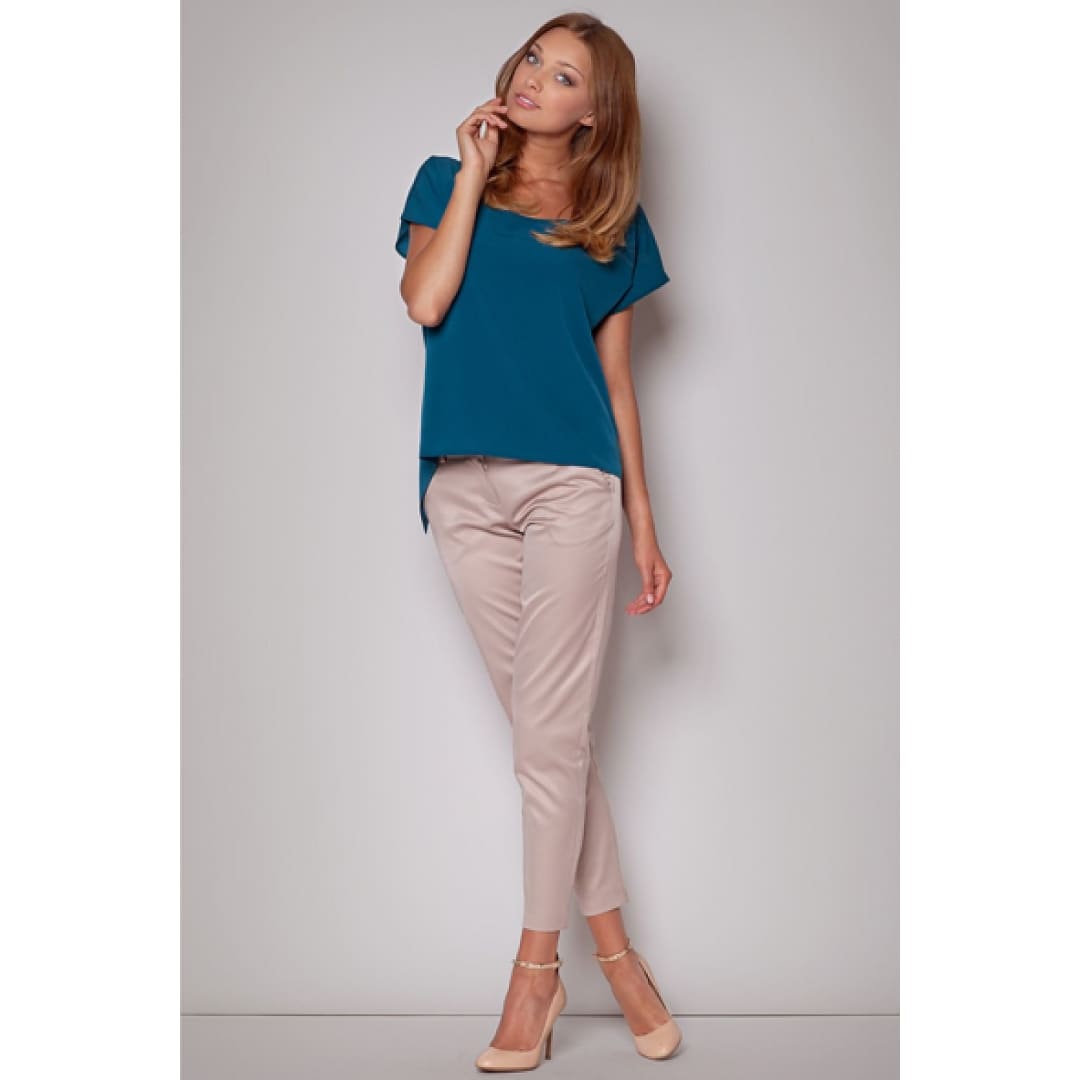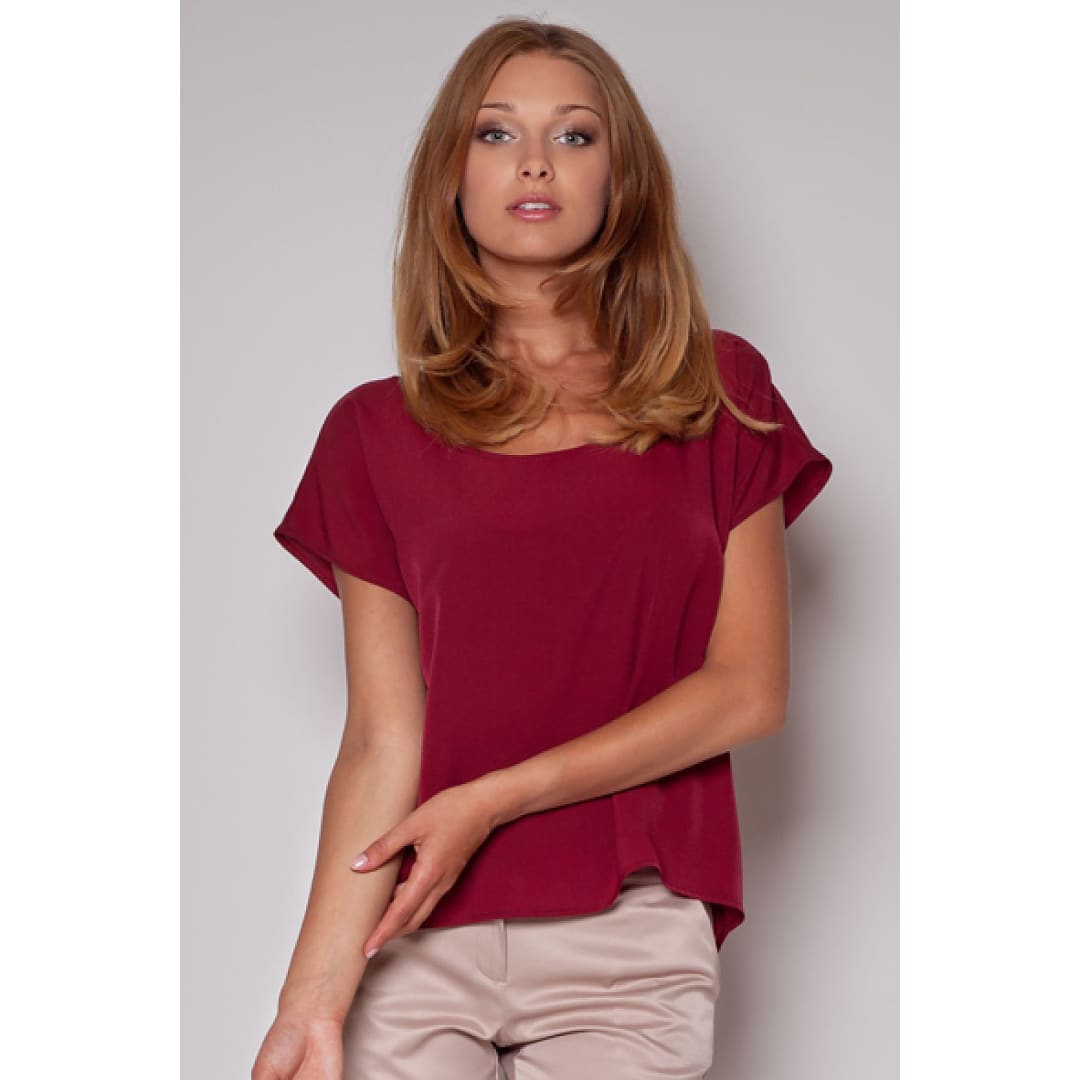 Loose-fitting blouse with kimono sleeves. A cut-out at the bottom of the back gives variety to the simple cut.