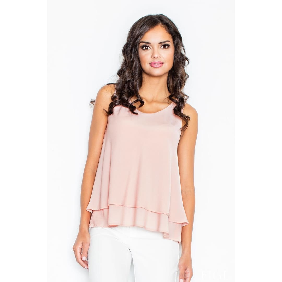 Sleeveless blouse with a semi-cut neckline and a striking double-breasted bottom.