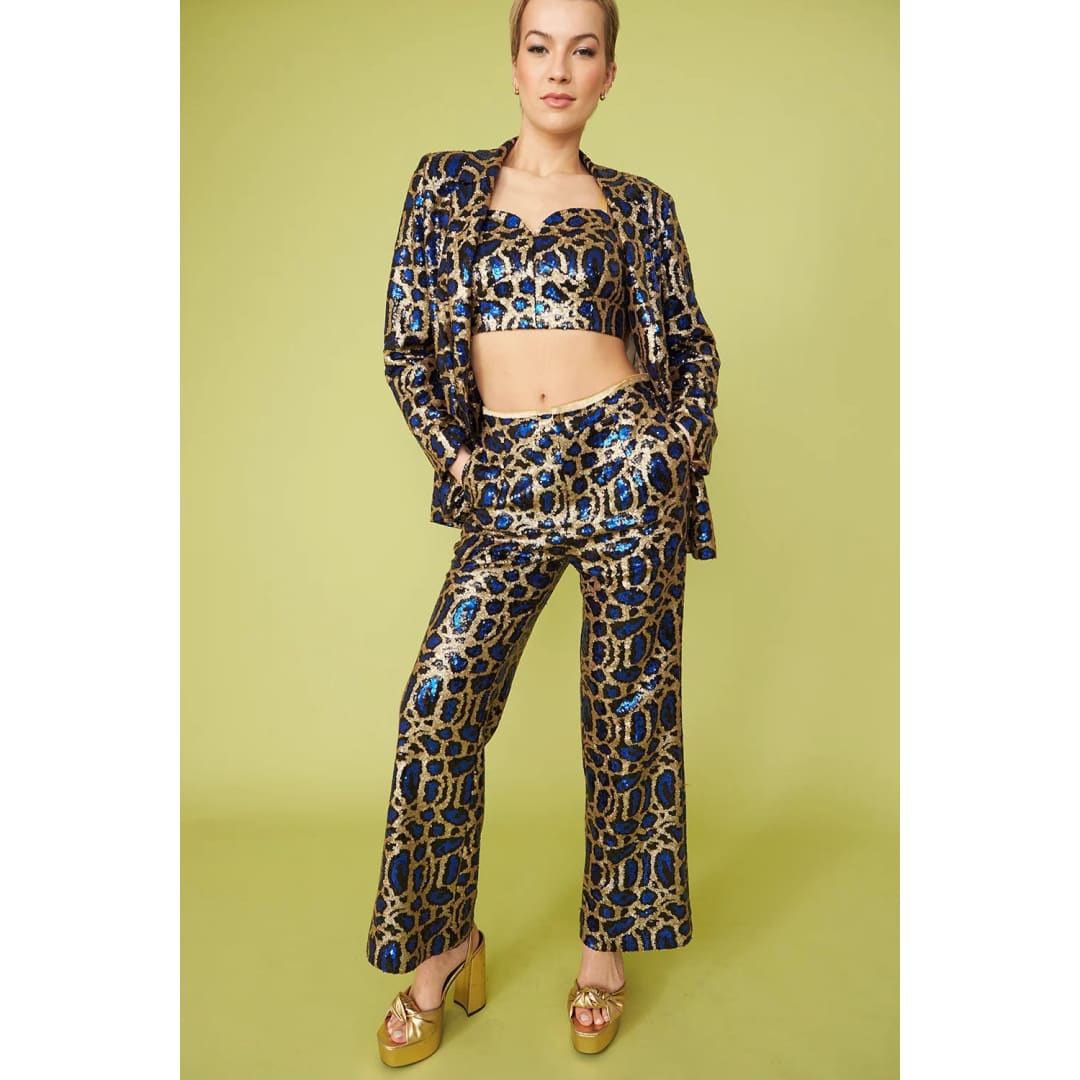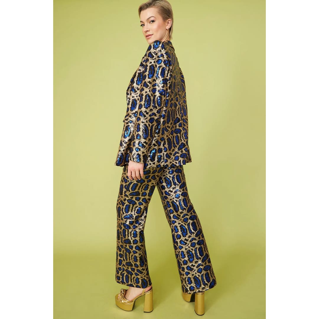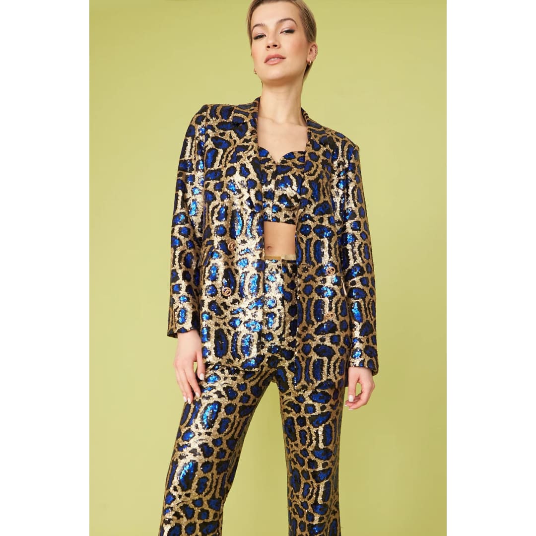 Blue Bamboo Animal Print Sequin Blazer