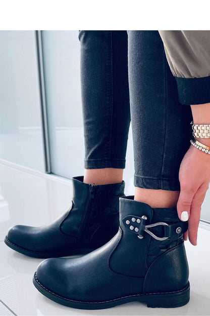 Women's boots on a flat heel. Impressive embossing is sure to attract your attention, and the classic cut in a universal black color is always a great choice.... The practical zipper closure on the side of the upper will ensure quick and effortless putting on. They are made of organic leather, and the interior is lined with soft fur.