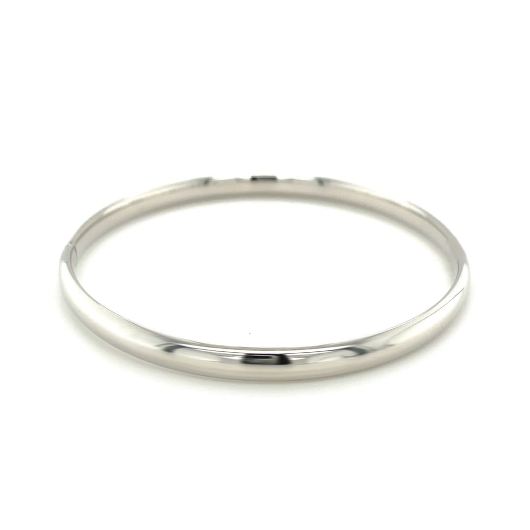 A classic high polish bangle crafted in 14k white gold with a hidden clasp.