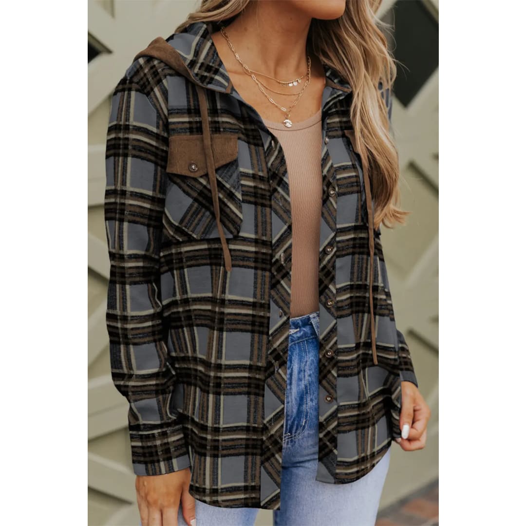 - This drawstring contrast hooded shacket will meet your fashion needs well