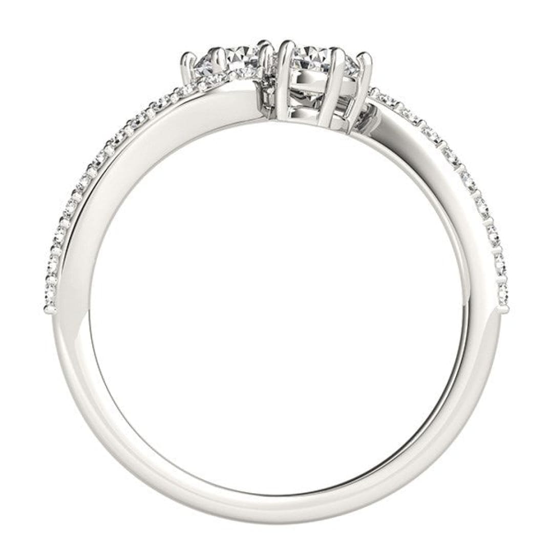 Curved Band Two Stone Diamond Ring in 14k White Gold (3/4 cttw)