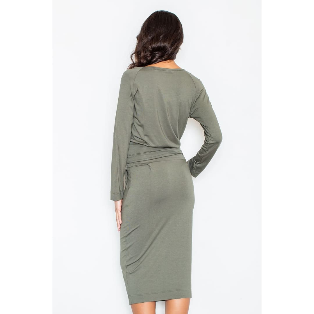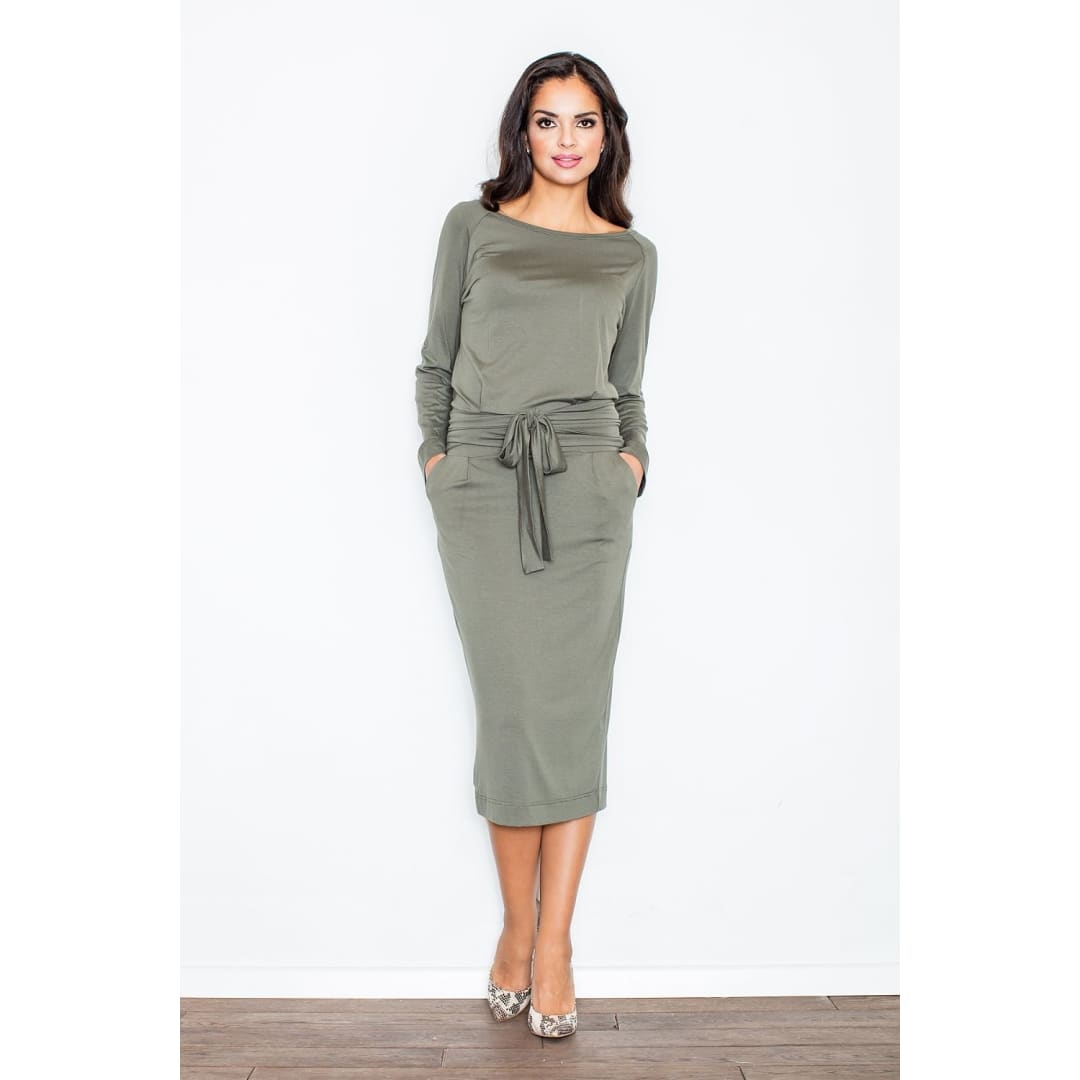 Elegant women's dress created for women who appreciate fashion and comfort. Dress with a loose cut, boat neckline. Dress has long sleeves with the possibility of podpięcia. At the waist dress is tied.