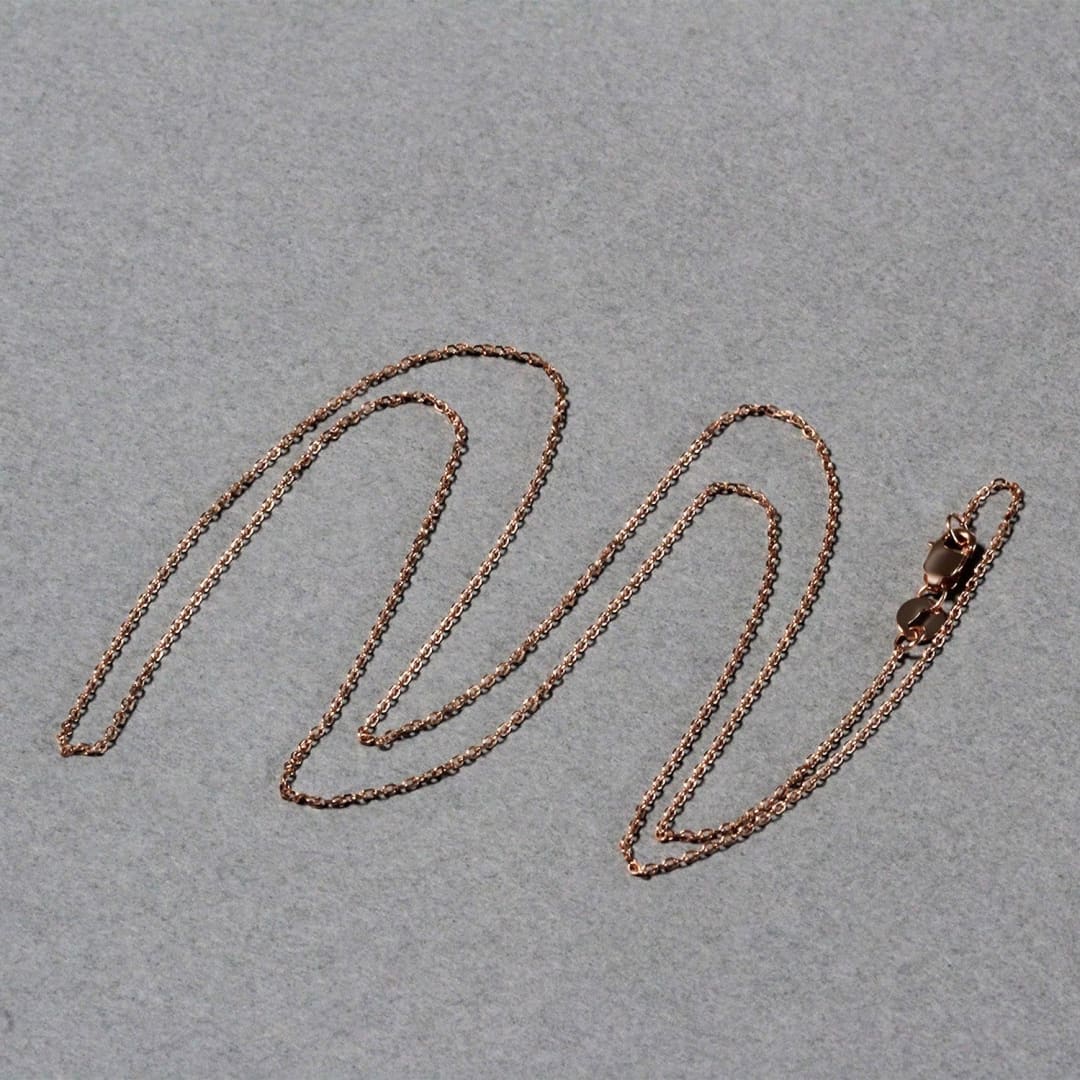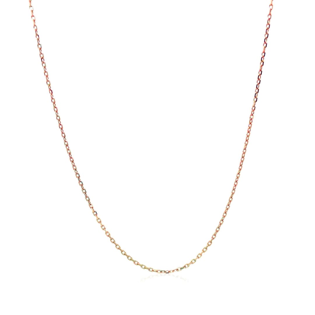 Diamond cut cable link chain crafted in 14k roses gold measuring 0.8 millimeters in width. Available in lengths 16 inches, 18 inches and 20 inches