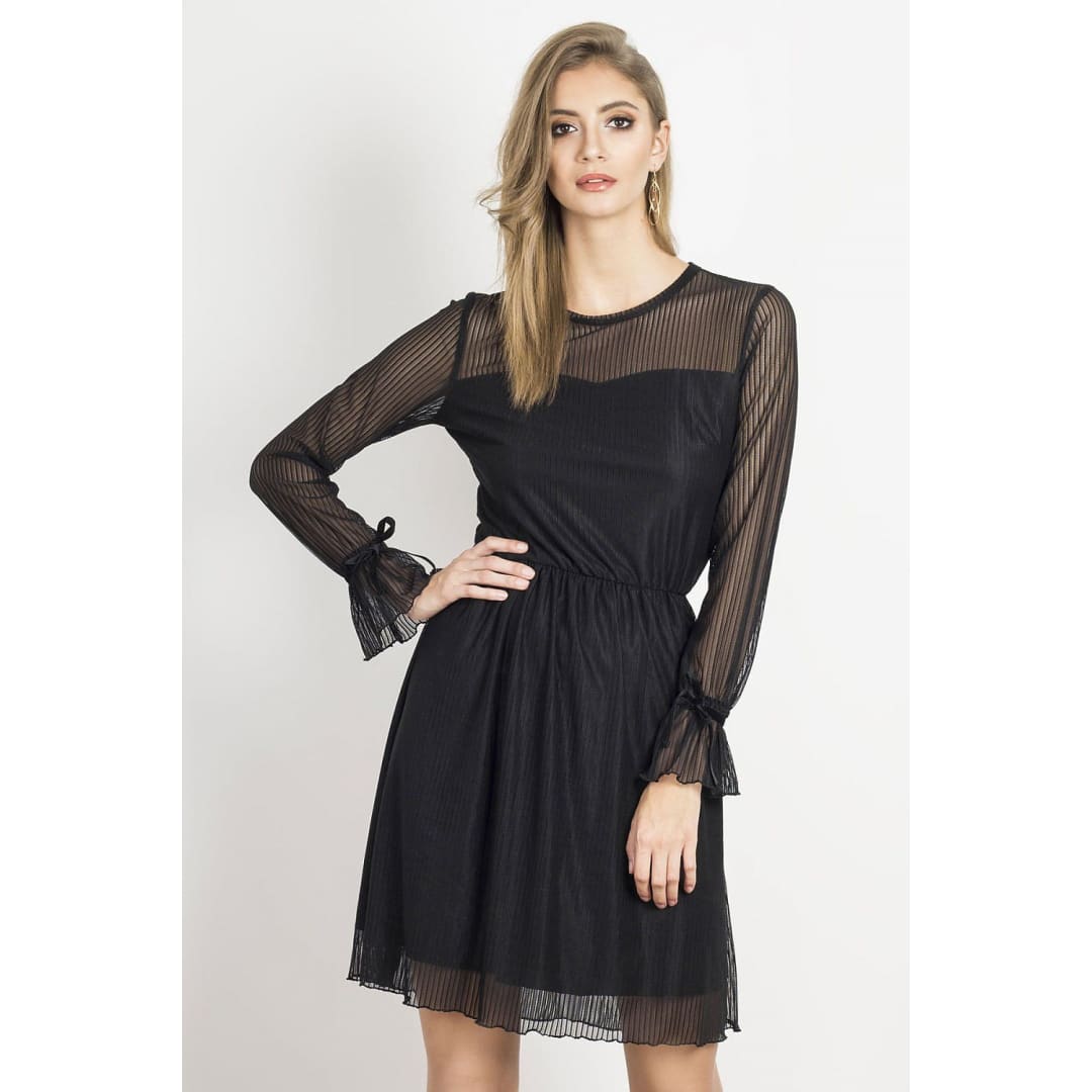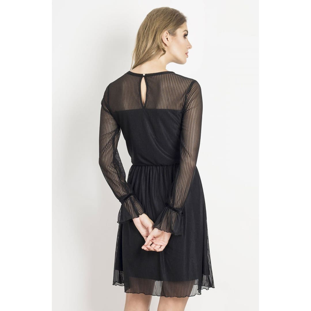 Elegant, minimalist dress with a simple cut. Dress is made of elegant fabric. Bottom and sleeves finished with spectacular lace, giving unique elegance. At the back zip for easy fitting. Made in Poland.