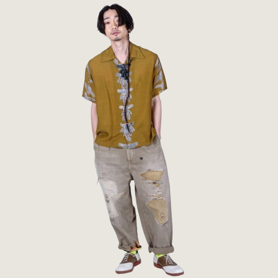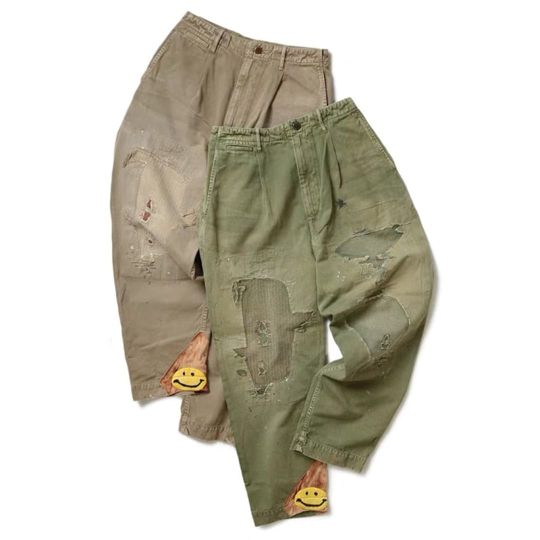 Discover a new look with the Kapital Japanese Patch Damage Wash Casual Pants. Featuring a mid waist, midweight thickness and an ultra-stylish safari style, these full length cargo pants are crafted with polyester and cotton for ultimate comfort. With a flat front and loose fit, they also boast a bleached effect and zipper closure, perfect to update any ensemble.