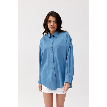 Oversize cut of the shirt and long sleeves ending in cuffs will make you feel comfortable and at ease throughout the day. The slightly elongated back and looser cut perfectly mask any imperfections of the figure. The shirt is buttoned and has a classic shirt collar, which adds elegance and class. This versatile shirt will be perfect for many occasions, from casual meetings with friends to more formal outings. You can wear it with both pants and a skirt to create a variety of styles. Combining it with jeans and sporty sneakers you will get a casual look, while pairing it with an elegant skirt and stilettos you will create a chic outfit for evening outings.