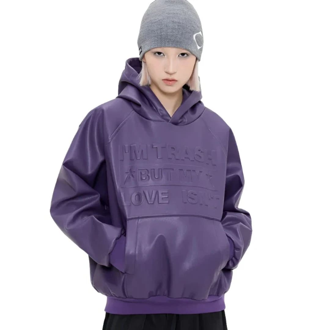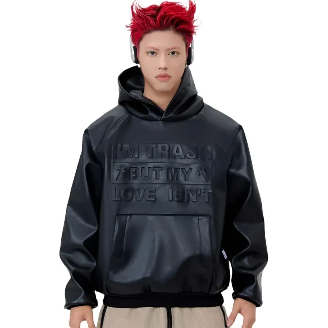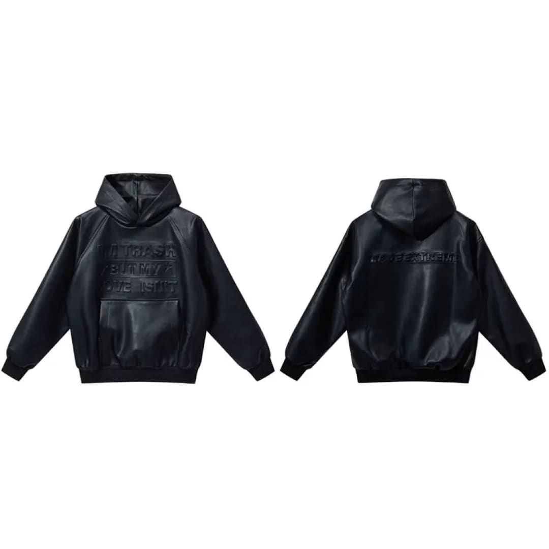 Elevate your streetwear game with the Leather Letter Hoodie Jacket. This stylish piece merges the edginess of hip hop fashion with the bold aesthetics of punk and goth, making it an essential for any urban wardrobe. The embossed letter design adds a unique touch, perfect for those who want to stand out in the crowd.