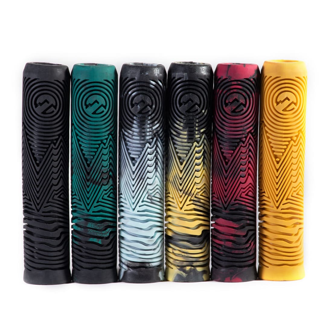 The Industry Grips are available in 6 colors: Black, Gum, Red Swirl, Forest Swirl, Canary Yellow Swirl, and Ice Blue Swirl.
