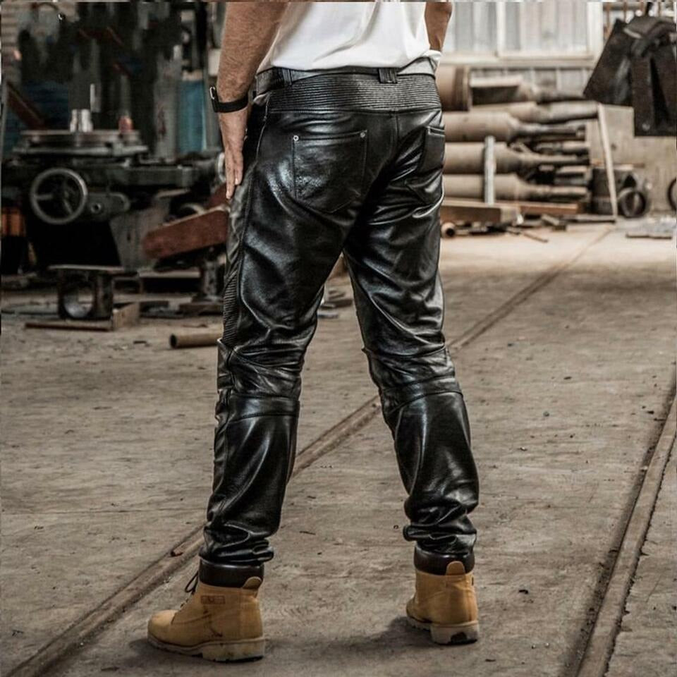 These genuine leather biker pants for men offer a sleek, slim fit that is perfect for any occasion. With a flat front, zip closure, and straight leg style, these lightweight pants are lined and feature cargo pockets for added convenience. Great for business, formal events, and more.