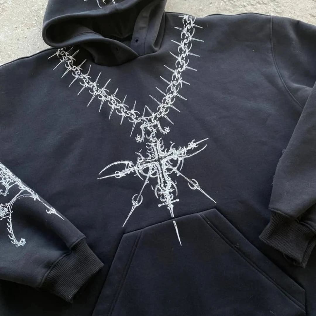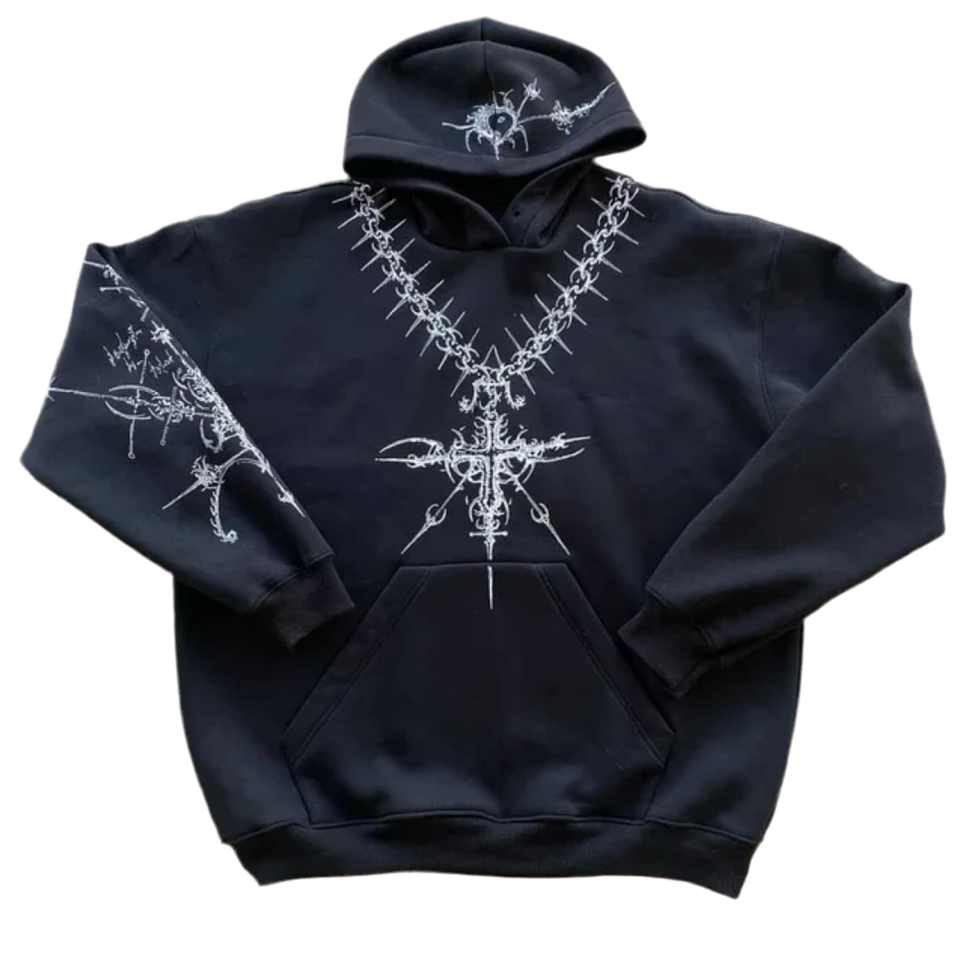 Spiked Threads: Y2K Gothic Punk Hoodie