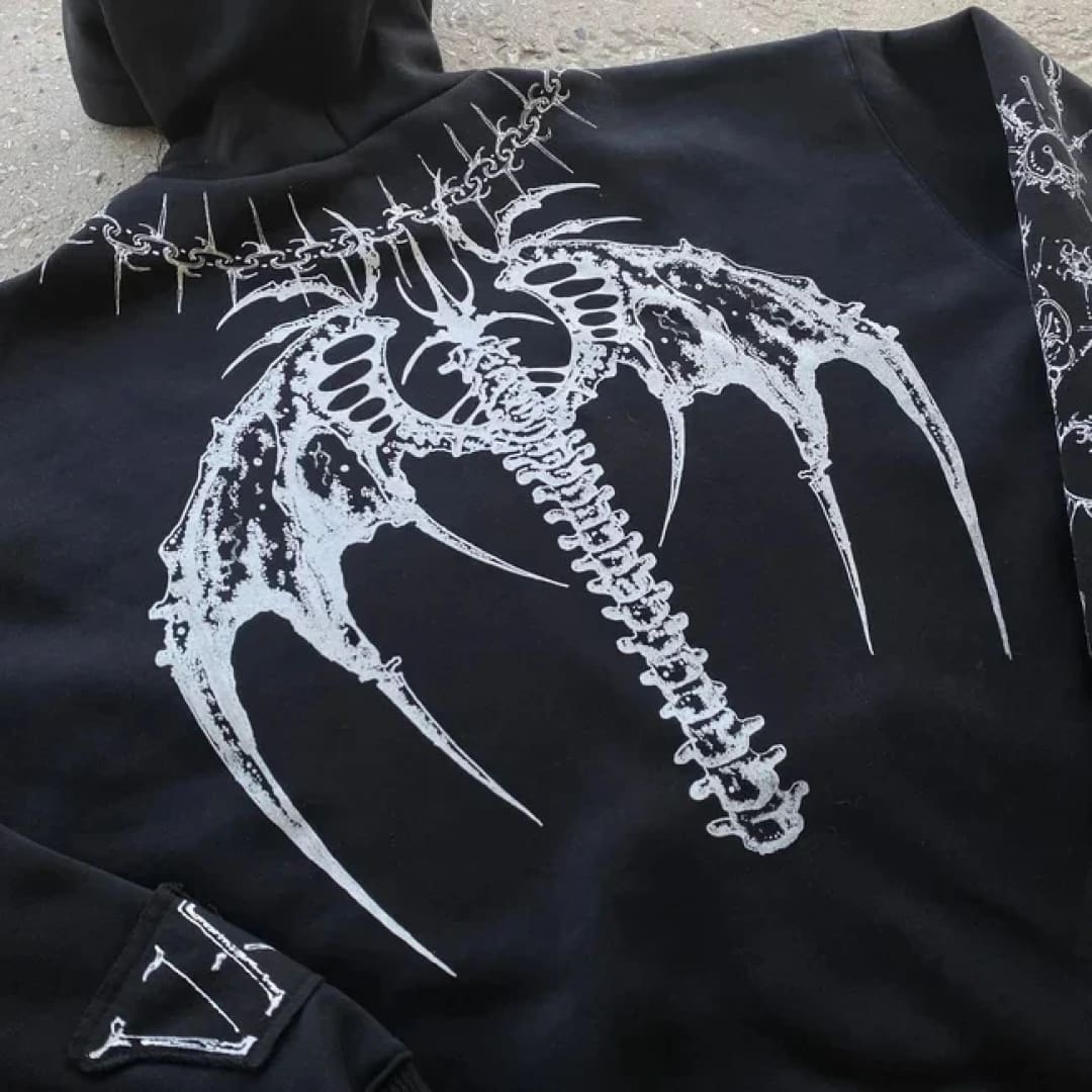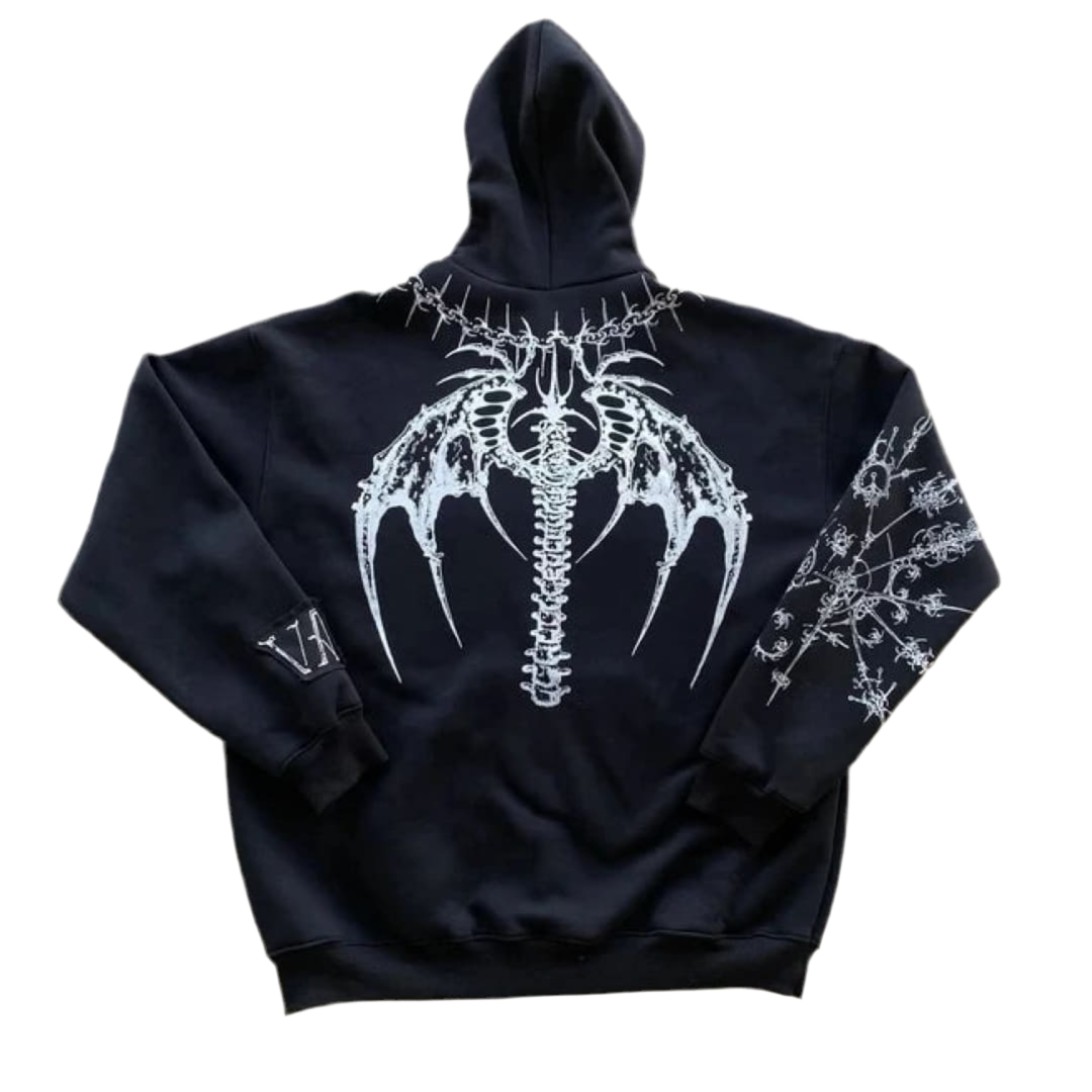 Dive into the world of urban fashion with this retro-inspired hoodie that perfectly captures the essence of gothic punk culture. Pair it with your favorite jeans or cargo pants to complete the look.