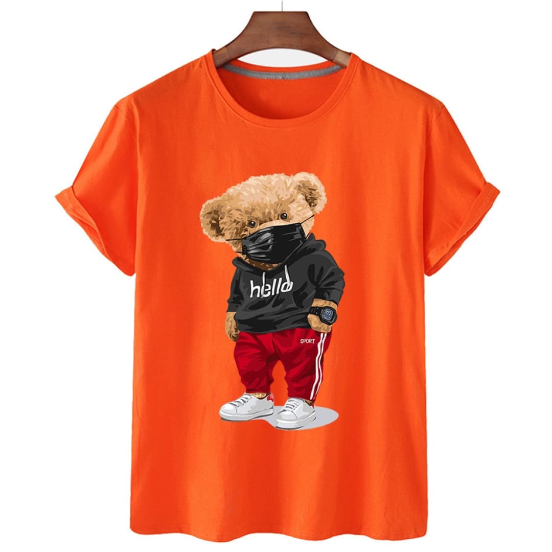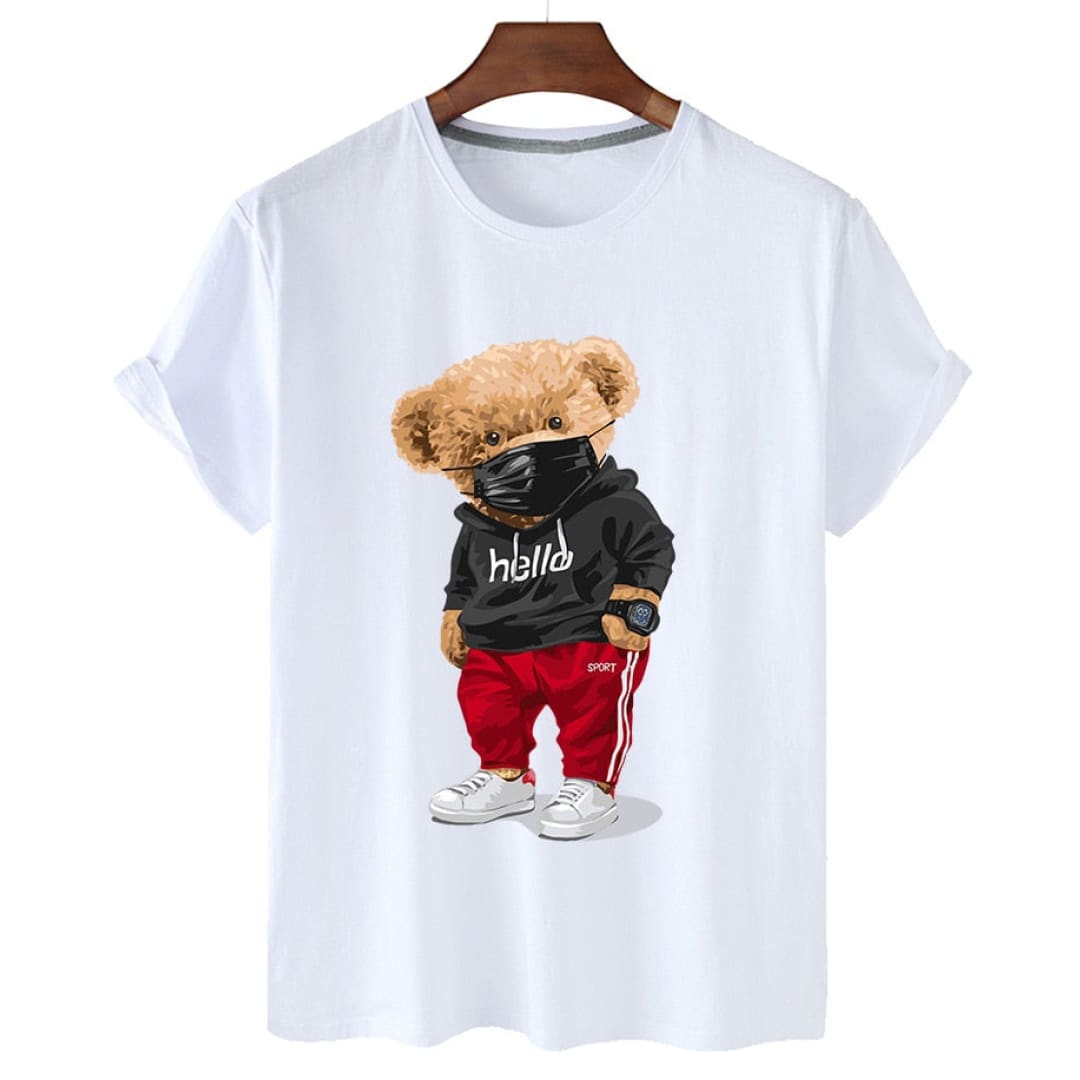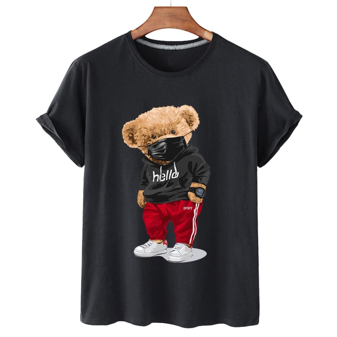 This Sports Mask Bear Print Short-sleeved T-shirt is highly versatile and can be styled with anything from jeans to skirts, making it the ultimate fashion staple for women aged 18-35. Featuring a regular casual fit