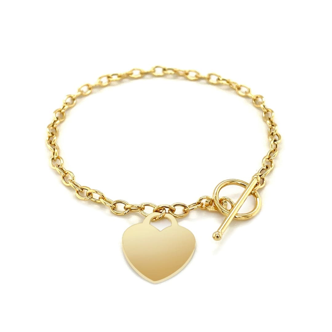 Toggle Bracelet with Heart Charm in 14k Yellow Gold