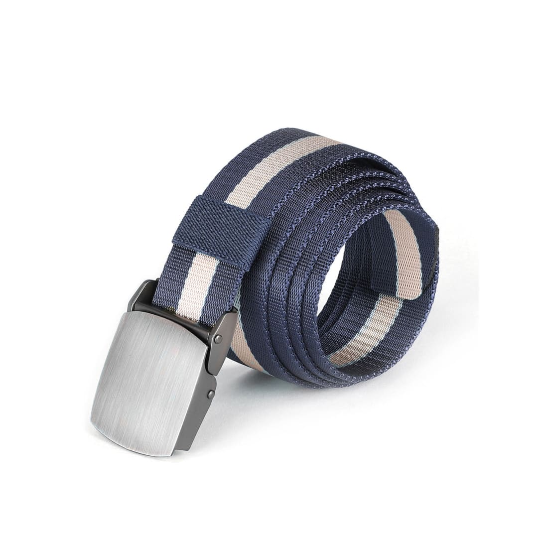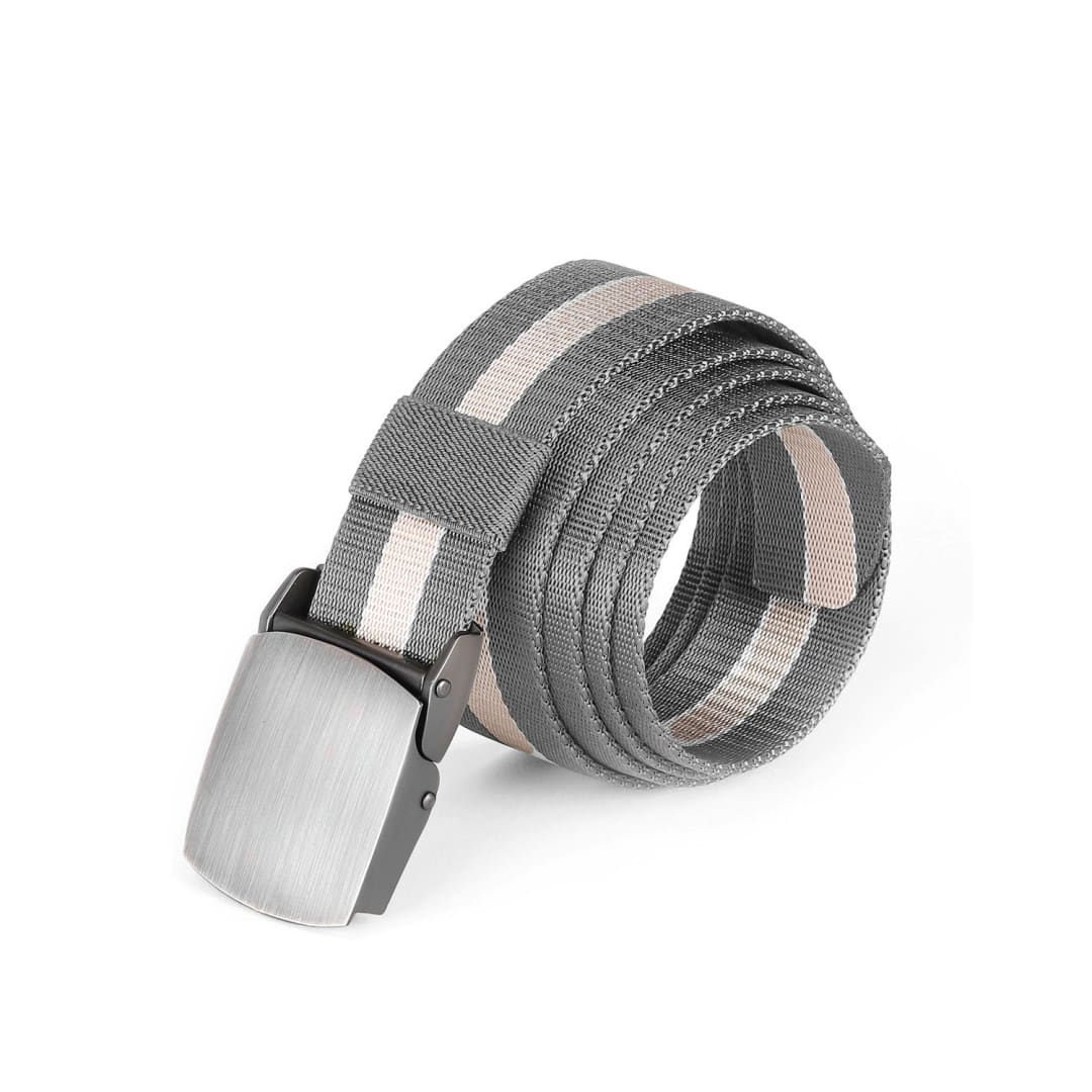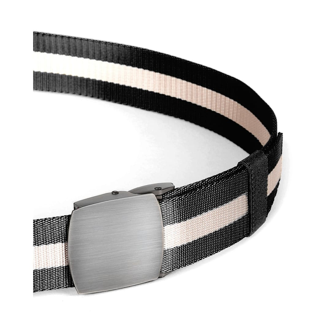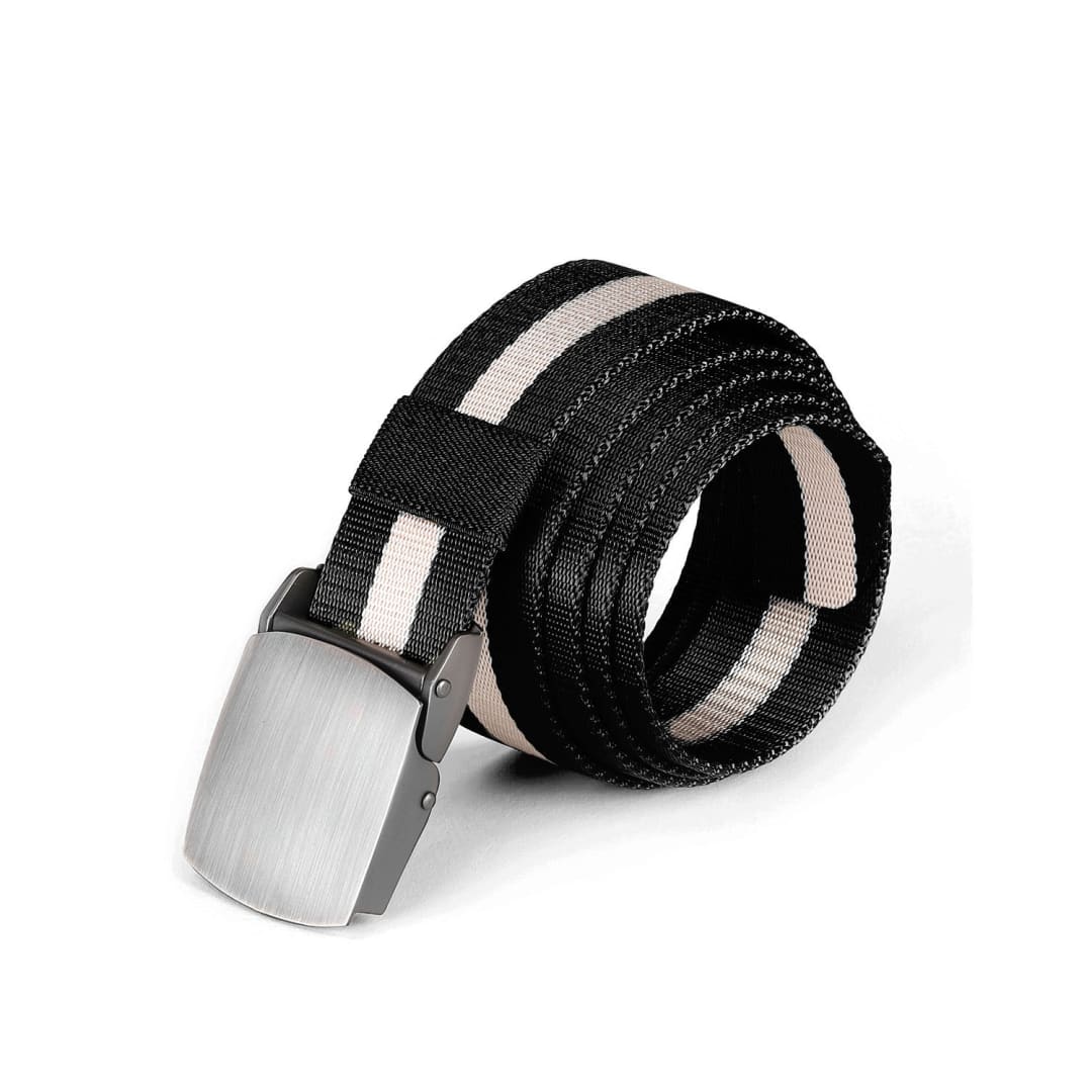 ZIMEGO Mens One Size Adjustable Strap Stripe Nylon Web Belt With Metal Buckle