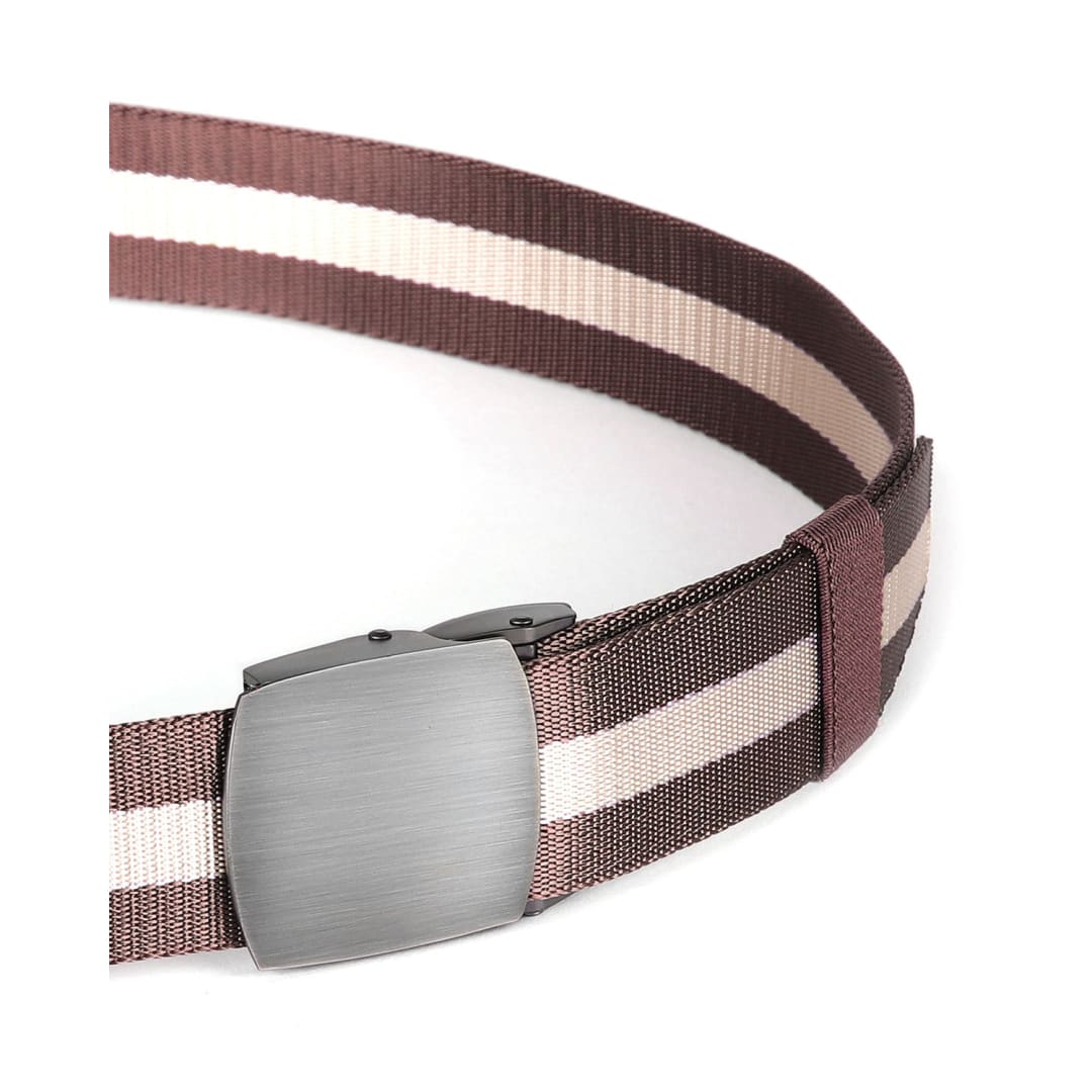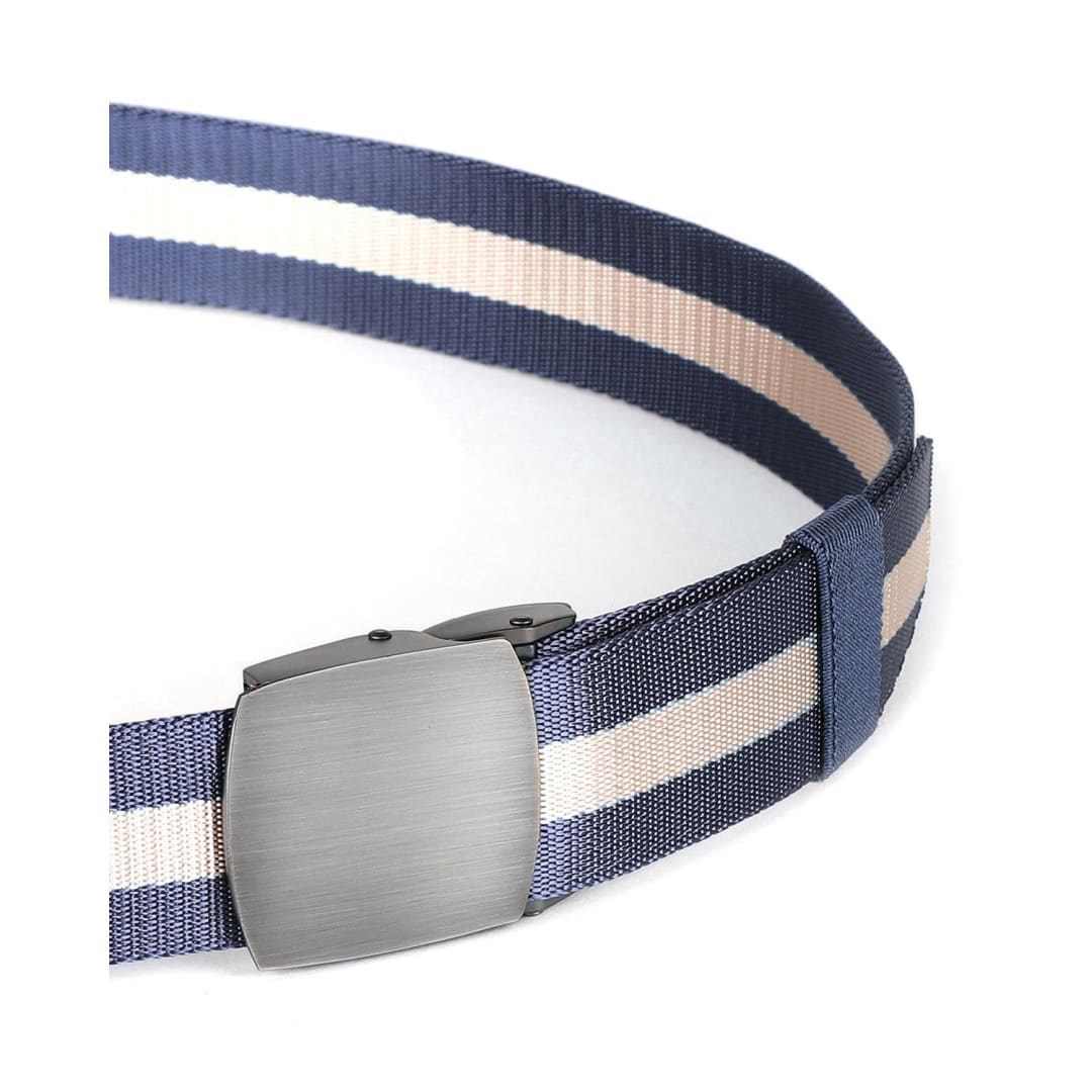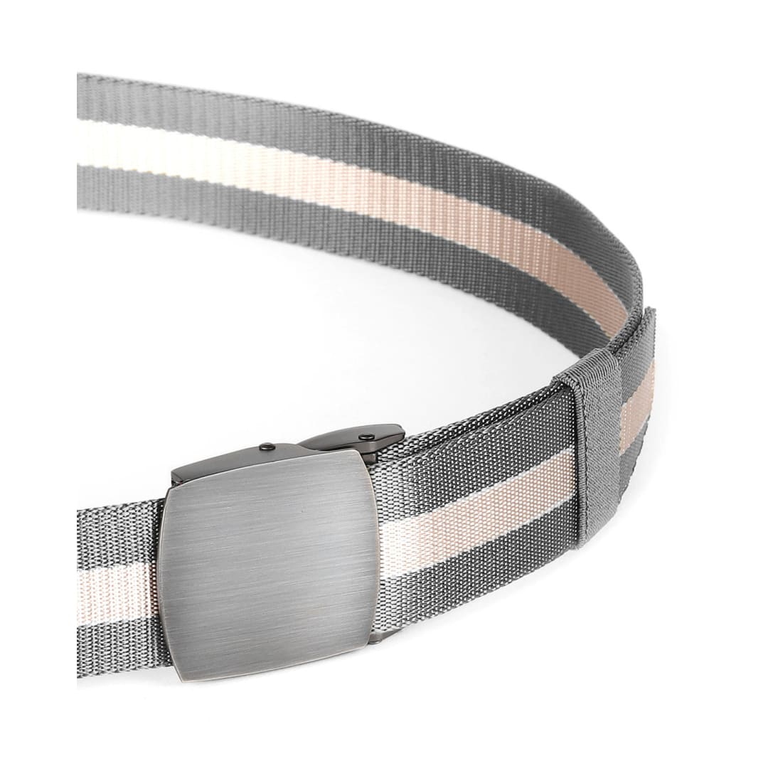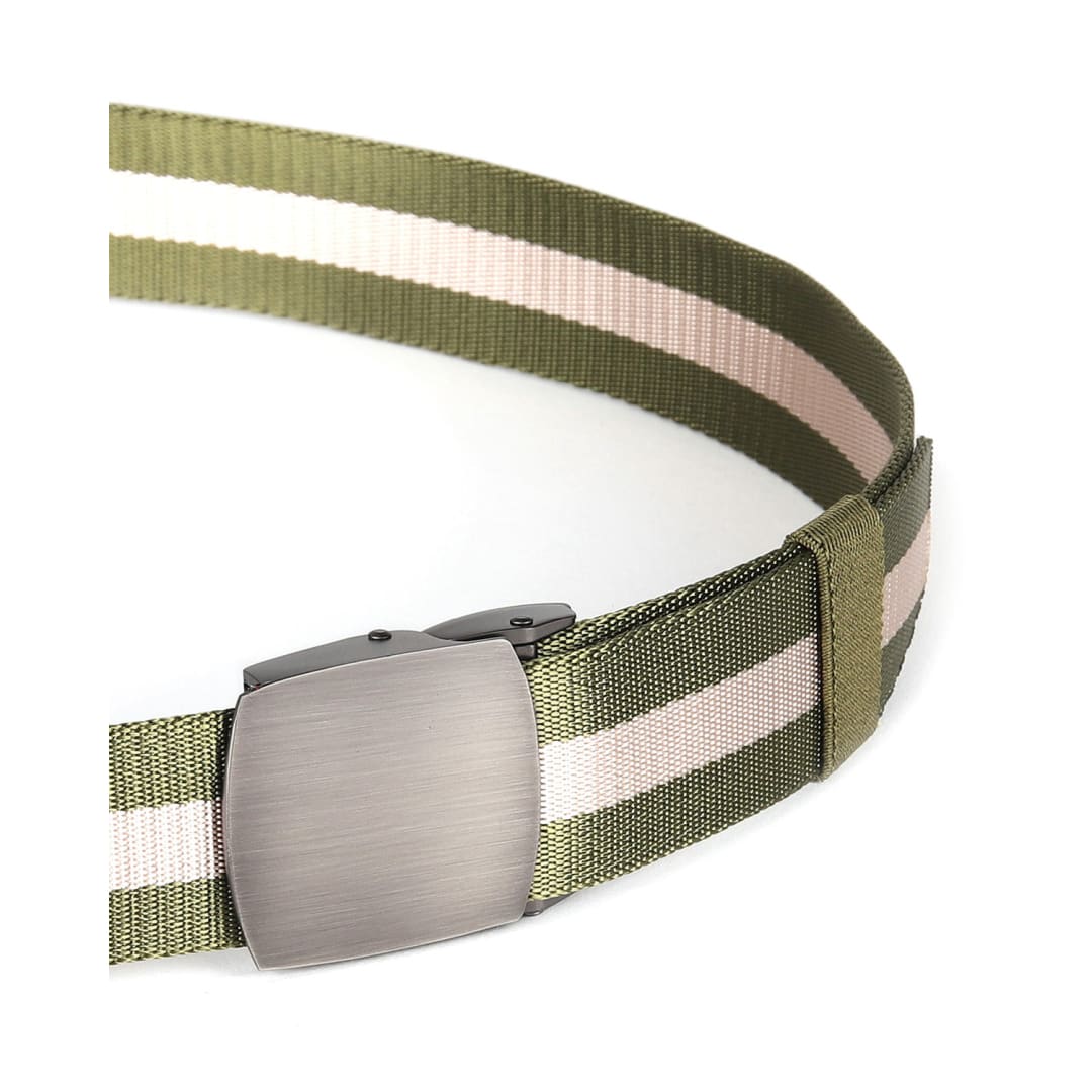 ZIMEGO Mens One Size Adjustable Strap Stripe Nylon Web Belt With Metal Buckle